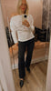Rebecca is 5’5, and typically a size 4. She is wearing size 4.