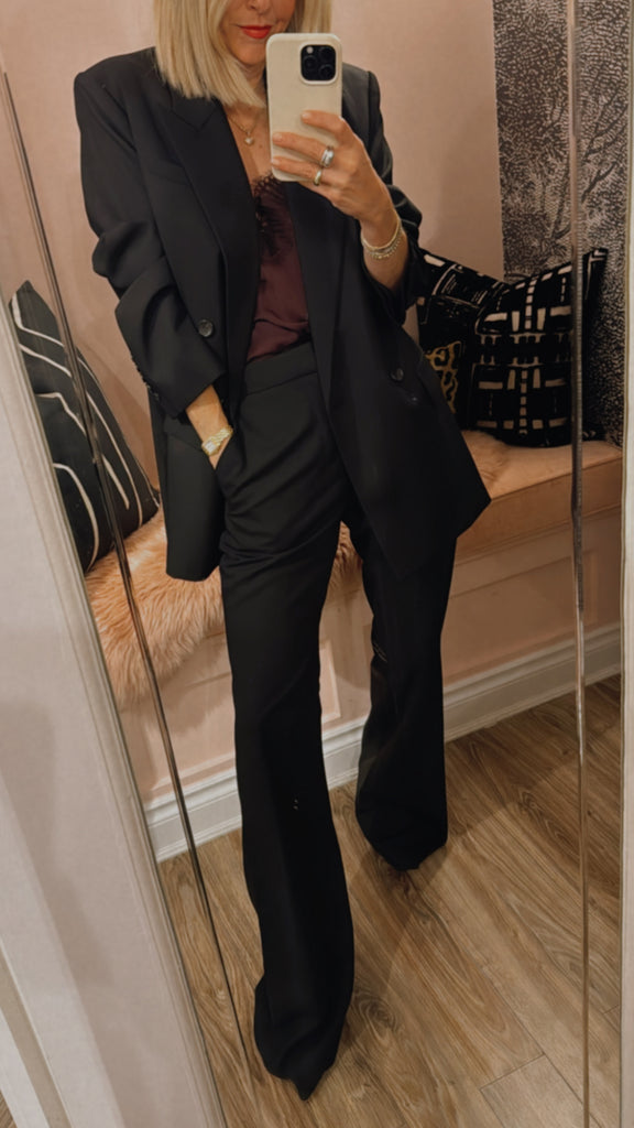 A.L.C.'s best-selling high-rise trouser returns in a new suiting twill—softly structured with a touch of stretch. The slim-through-the-thigh fit flares subtly at the hem, creating a clean, elongating silhouette suited to work, events, and beyond.