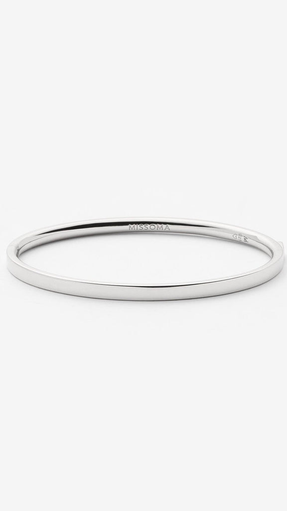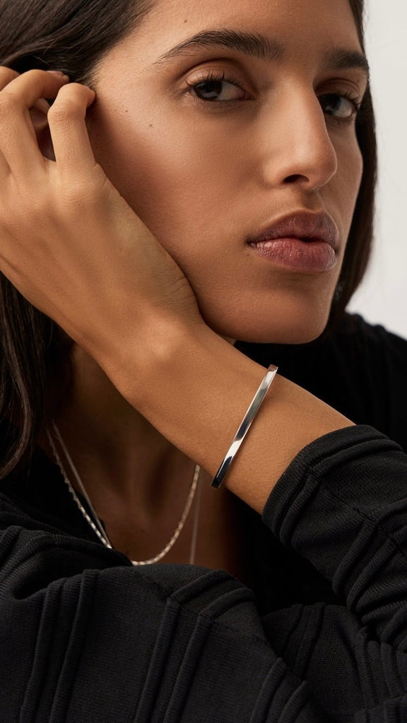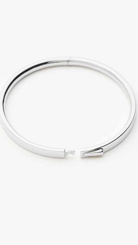 Keep it classic with a bangle bracelet – an everyday jewellery essential. Designed with a hinged oval shape for easy wear, this silver band can be worn solo or paired with chunky chains to create a bold arm stack.