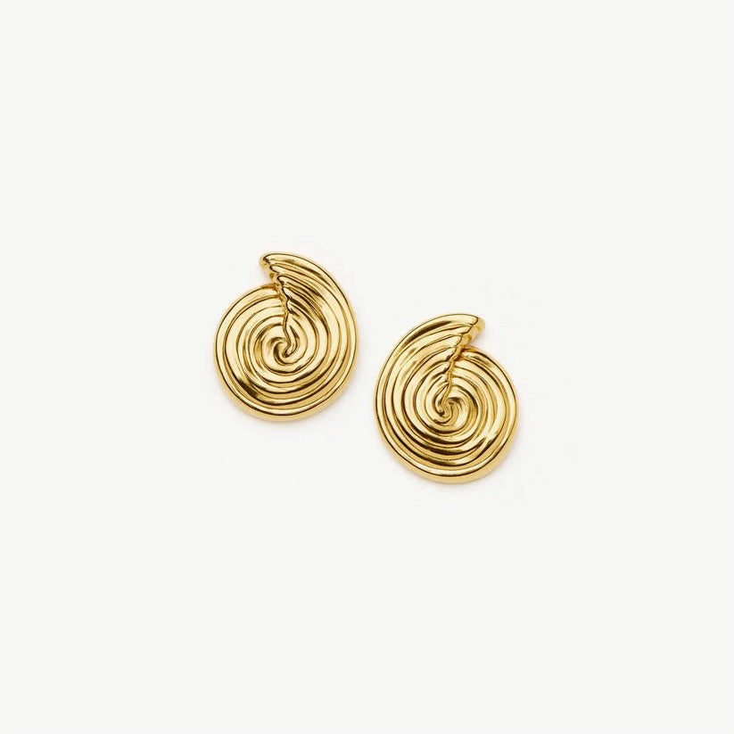 These oceanic-inspired stud earrings feature a small gold spiral element making them perfect for everyday styling. Accessorise your ear stack by styling with mini hoops & huggies or small stud earrings.
