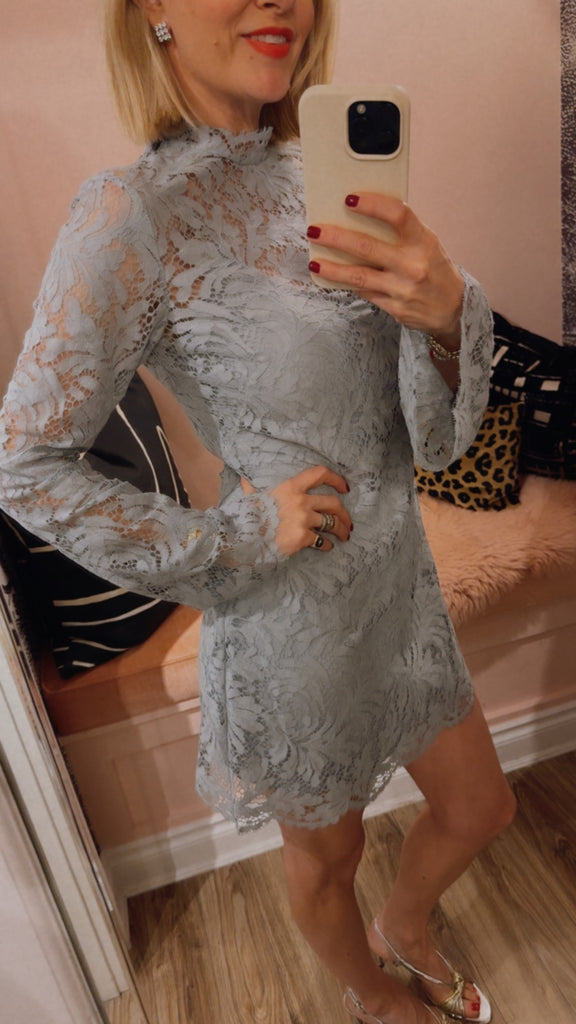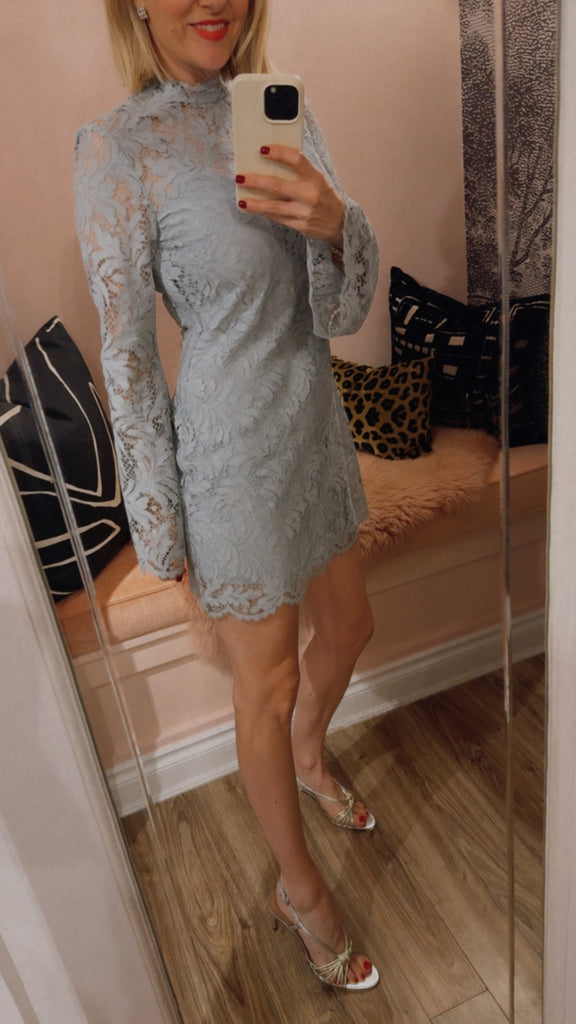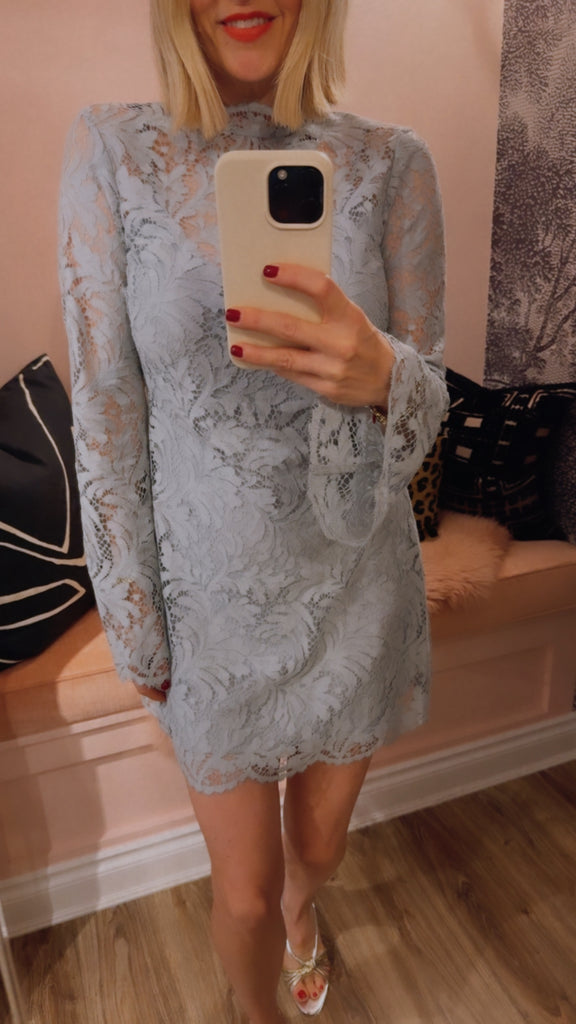 The Eden Dress is a modern interpretation of classic lace. Cut from archival French lace with a botanical-inspired pattern, this streamlined long-sleeve mini feels refined yet forward. Finished with scalloped edges and a built-in slip, it’s a wearable statement for cocktails, dinners, or evening events.