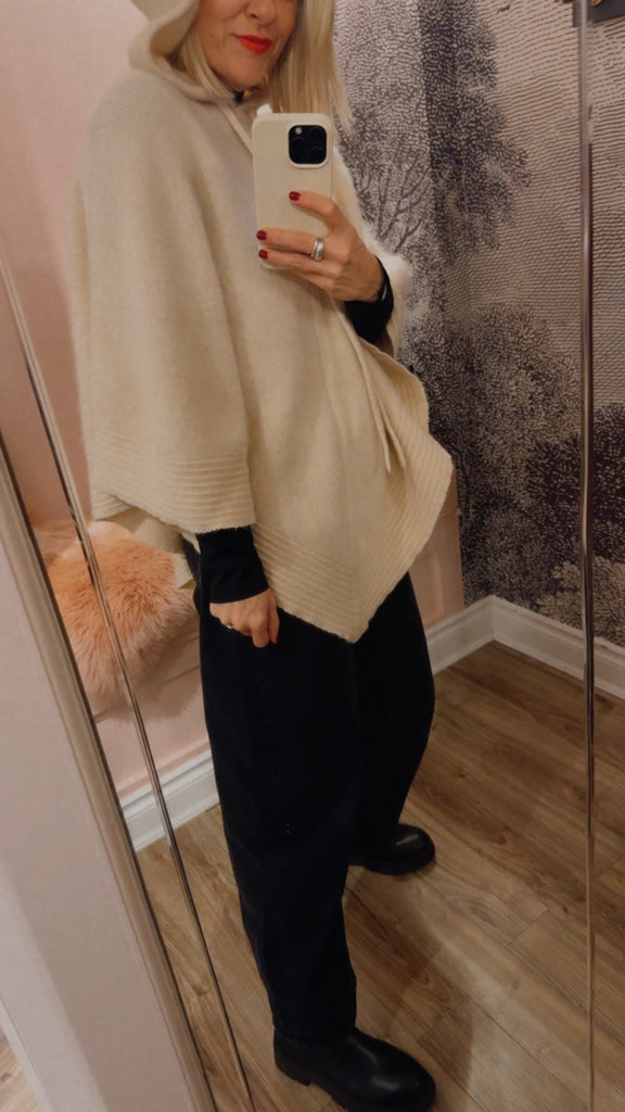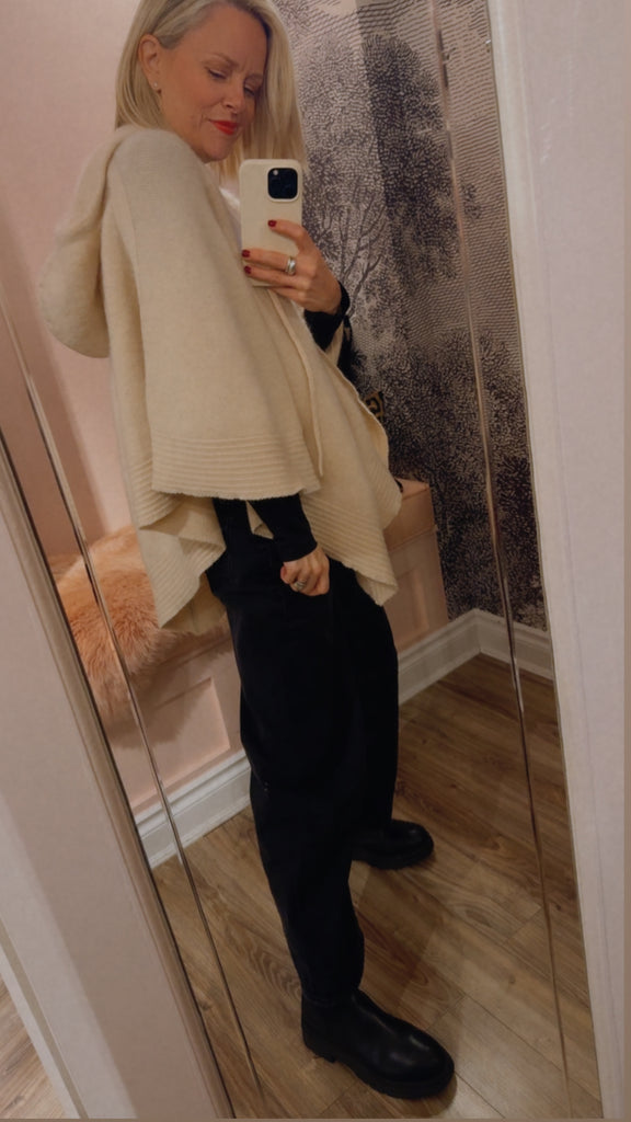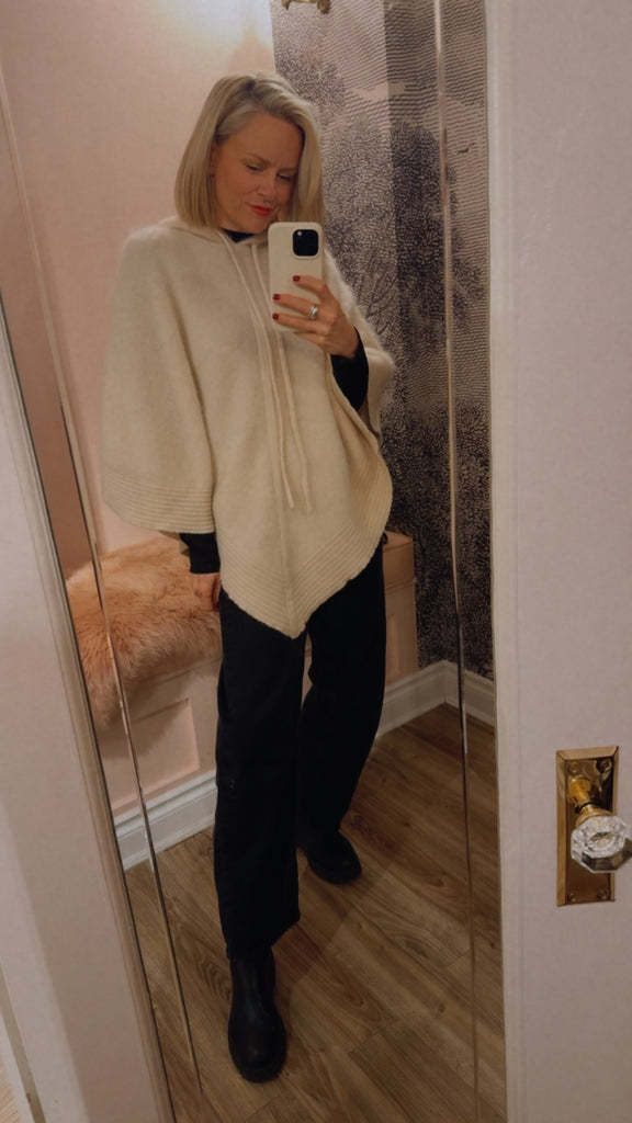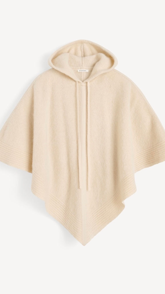 Layered over the season’s blouses, blazers and lighter outerwear, an eclectic cape – such as the Viggo design – adds both warmth and depth. Made in a wool mix, the triangle silhouette is detailed with a large hood, tie closure and graphic panels.