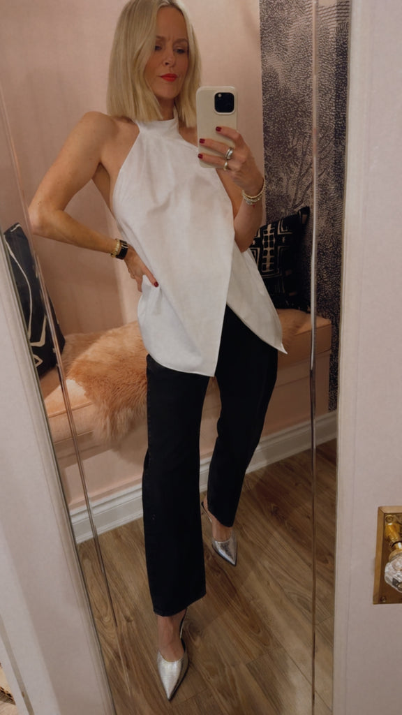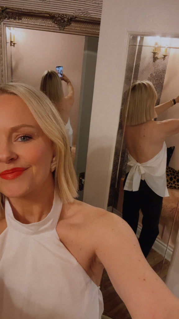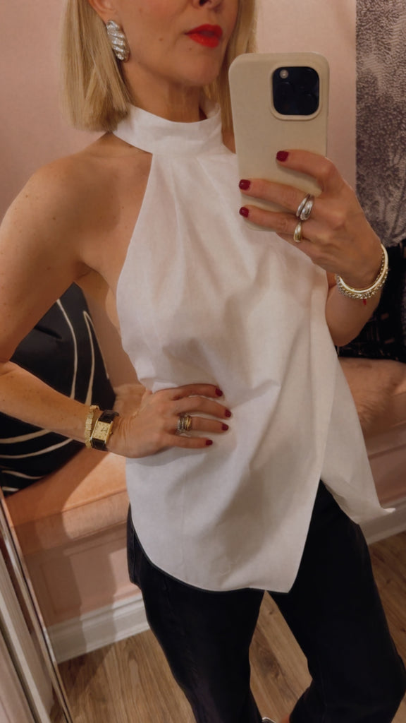 Crafted from 100% organic cotton, the Oxford Halter Tie Back Top features a relaxed, feminine silhouette with a halter neckline secured by a button fastening. The wrap design is enhanced by delicate tuck details, while the backless design with a self-tie fastening adds an elegant touch.