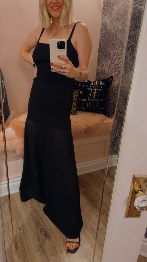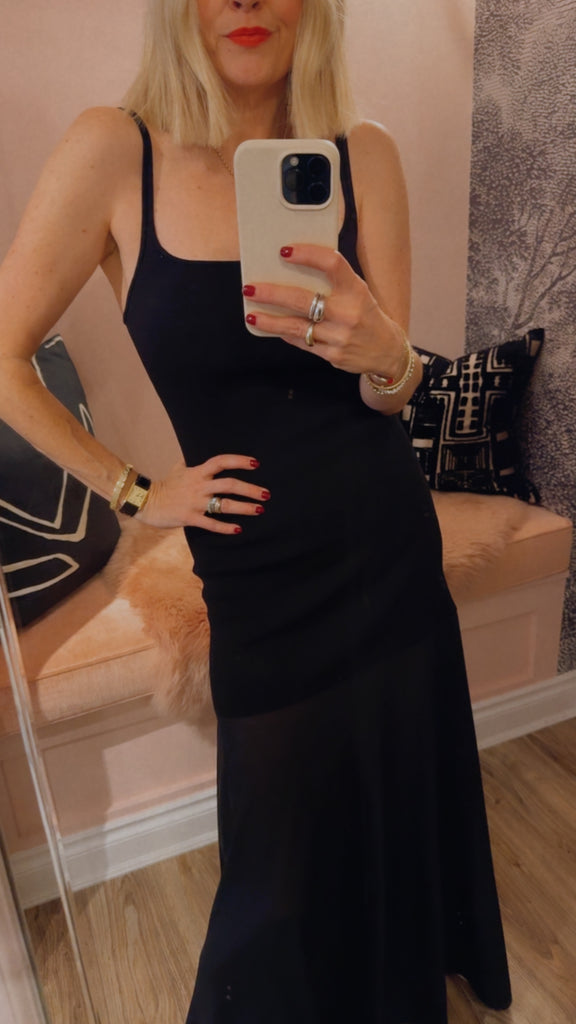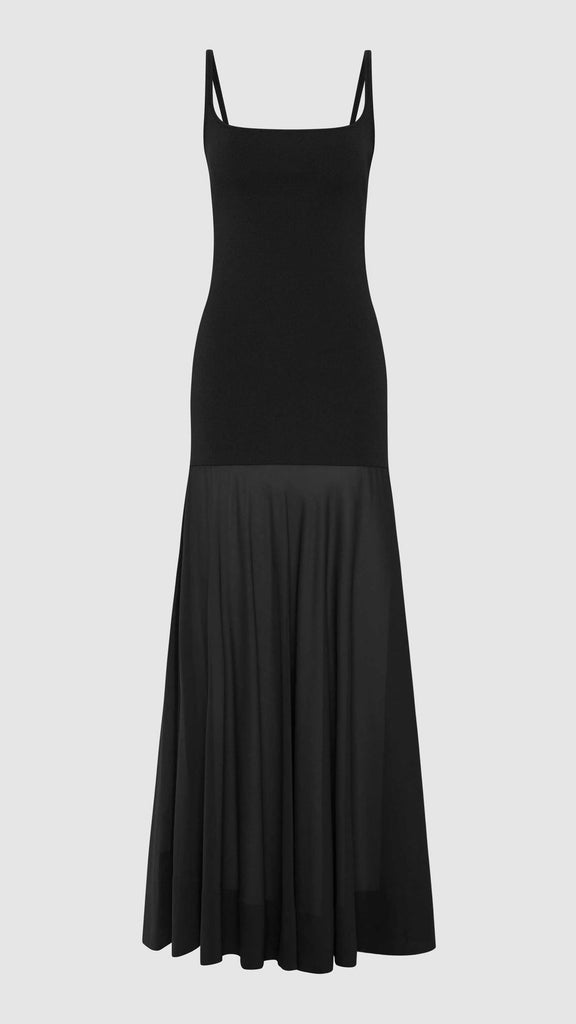 The Sheer Silk Circle Hem Dress combines structure and fluidity, featuring a fitted knit bodice that flows into a full circle silk skirt, falling gracefully to a maxi length. With a clean square neckline and lightweight feel, the Sheer Silk Circle Hem Dress a versatile design that transitions effortlessly from day to evening.