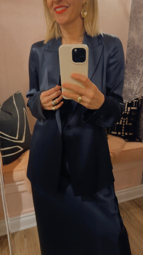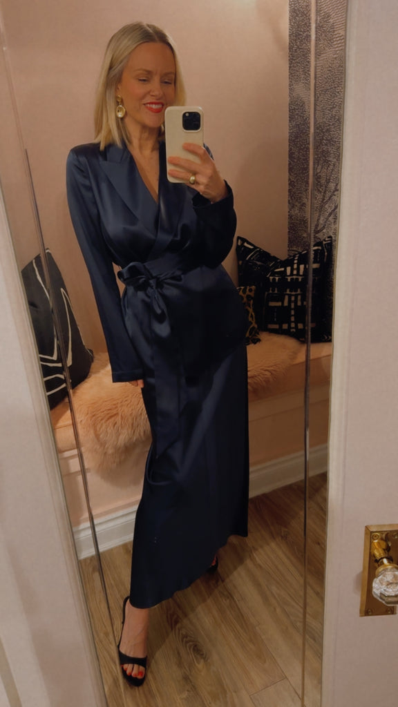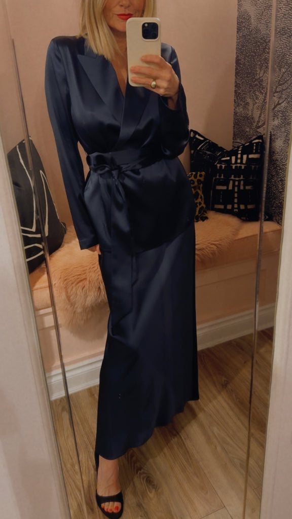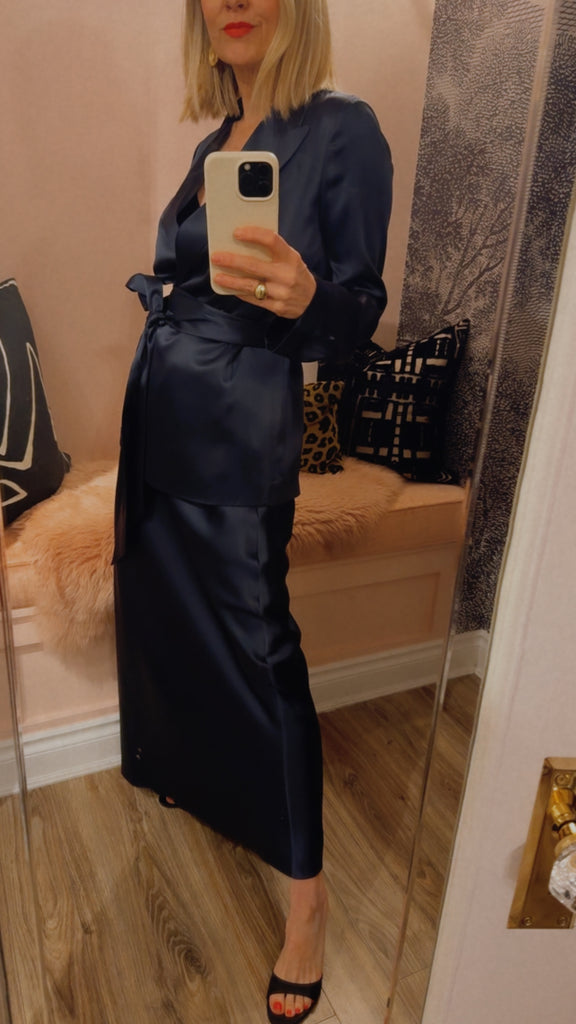 The Archer Silk Satin Jacket is a relaxed fit jacket, crafted from a lustrous silk with an ultra-smooth hand feel and fluid drape. It's elegantly finished with a wide tie belt and silk covered buttons. A modern take on relaxed tailoring, perfect layered over trousers or styled as a standalone piece.