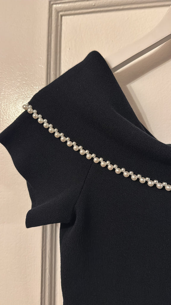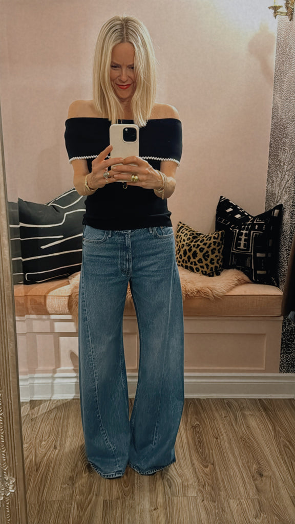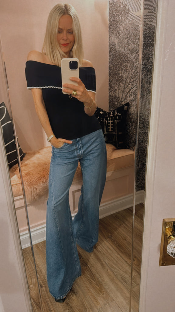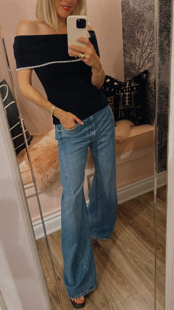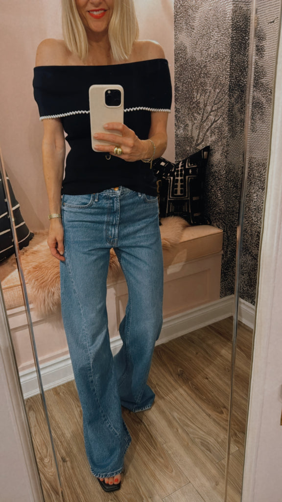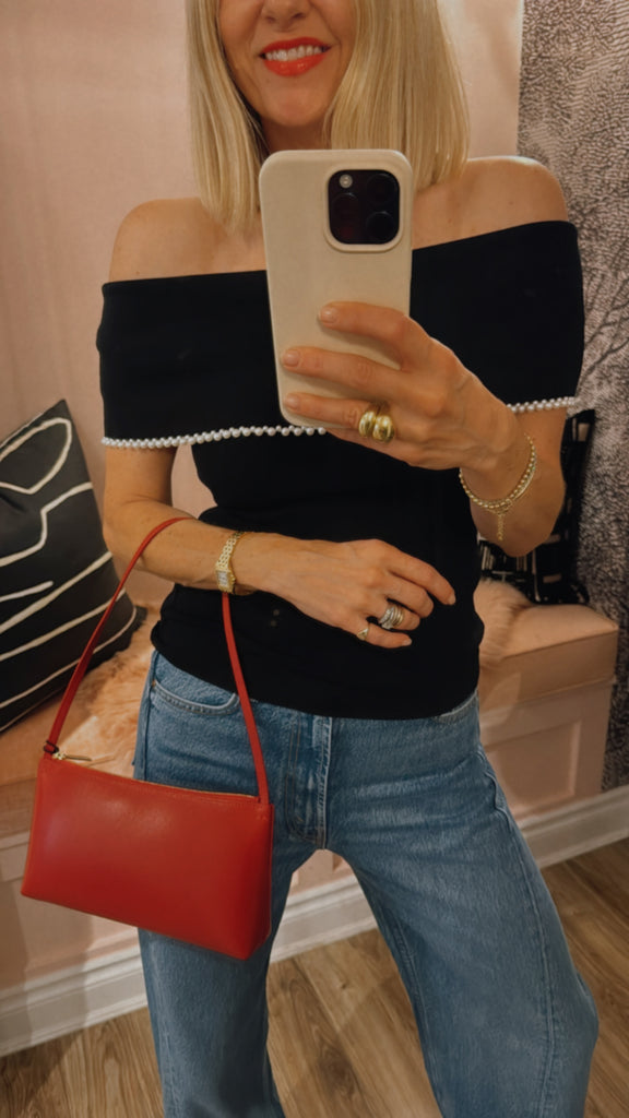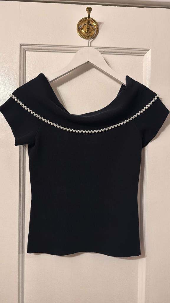 The Hetha top encapsulates the feminine elegance that By Malene Birger is known for. With its slim off-shoulder silhouette and faux pearl hem, it will instantly add sophistication year-around. Wear with voluminous bottoms to contrast the slim shape.