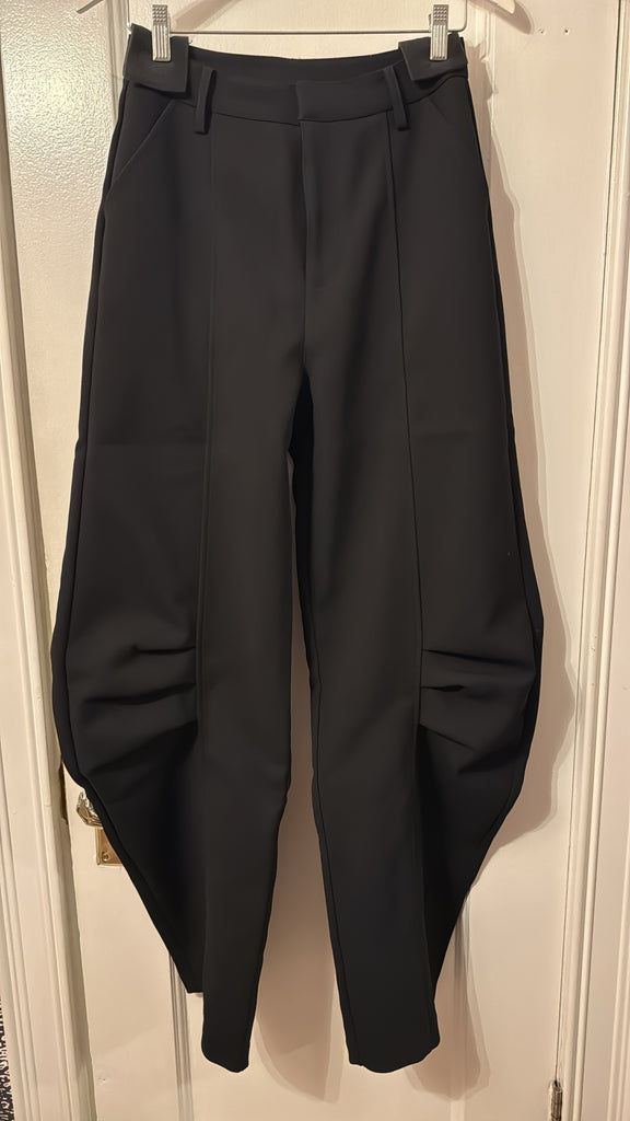 Suiting Cargo Pants are tailored pants with a sculptural silhouette. The design features a fitted waist, pressed creases, two front pockets and two patch pockets at the back. Belt loops are placed at the waist.