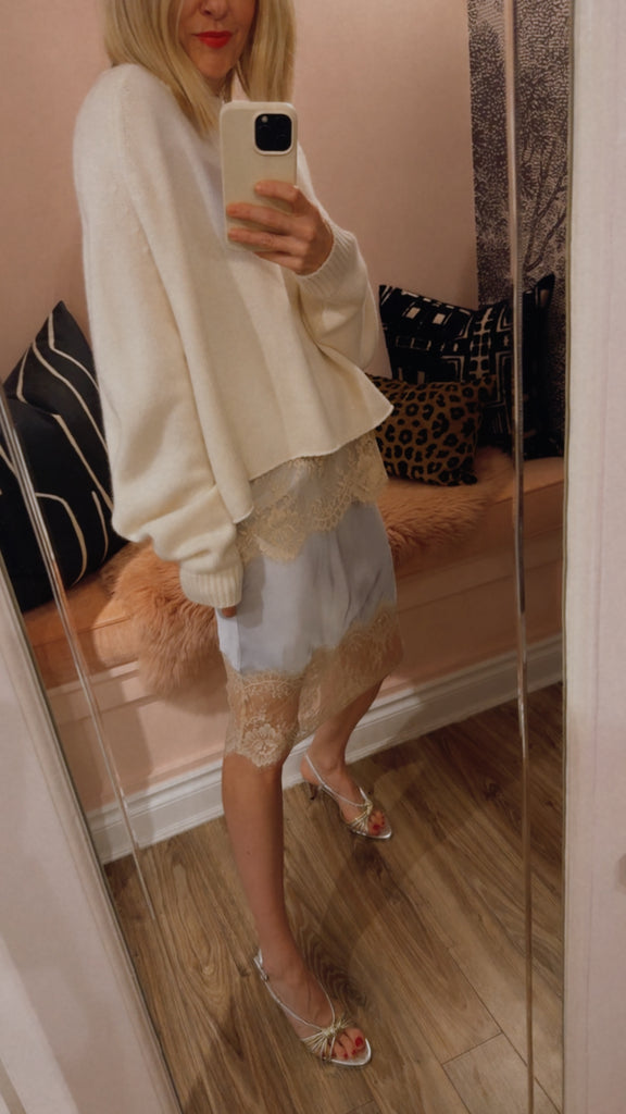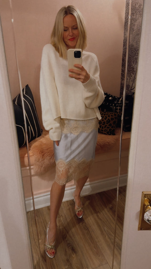 The Herskind Signature lace Herbert Skirt returns this season. Defined by a refined, feminine silhouette with a soft drape and tactile hand-feel.