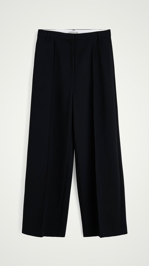 Introducing the Kimberly Pants: Classic, mid-waisted long pants featuring a stitched crease line at the front for a tailored look.