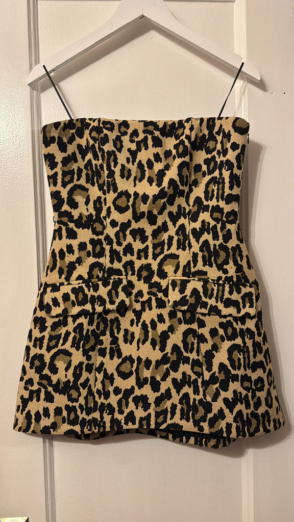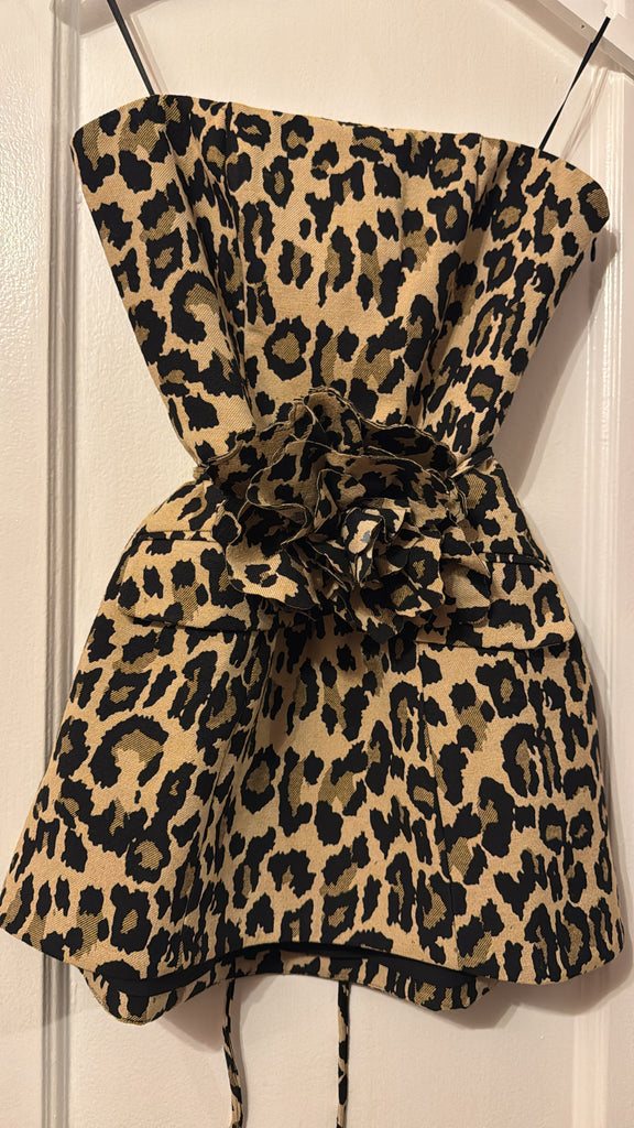 Designed with a sculpted silhouette and mini length, it can be worn both as a top or a dress. It features a fitted waist with a detachable belt and flower detail placed at the front, and lined through the body.