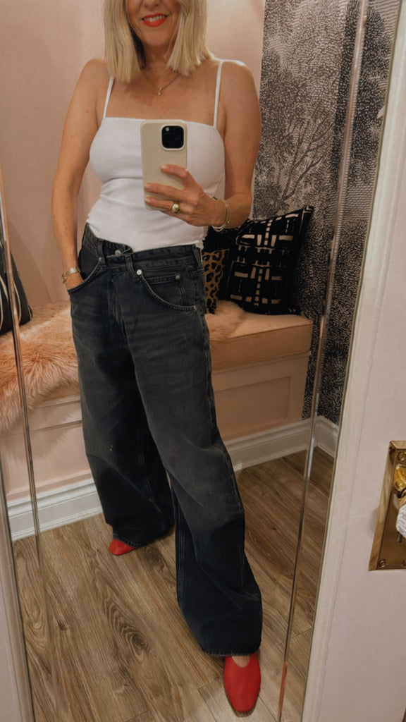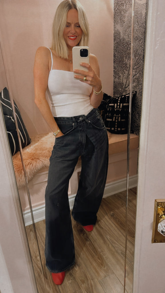 An instant best-seller, the Vana Jean makes a bold impression with it's signature fold-over waistband. Designed with a mid rise and intentionally oversized, relaxed fit, this style is crafted from rigid regenerative cotton for a soft yet structured feel. Pair it with a second-skin tank or an undone button-down for effortless impact.