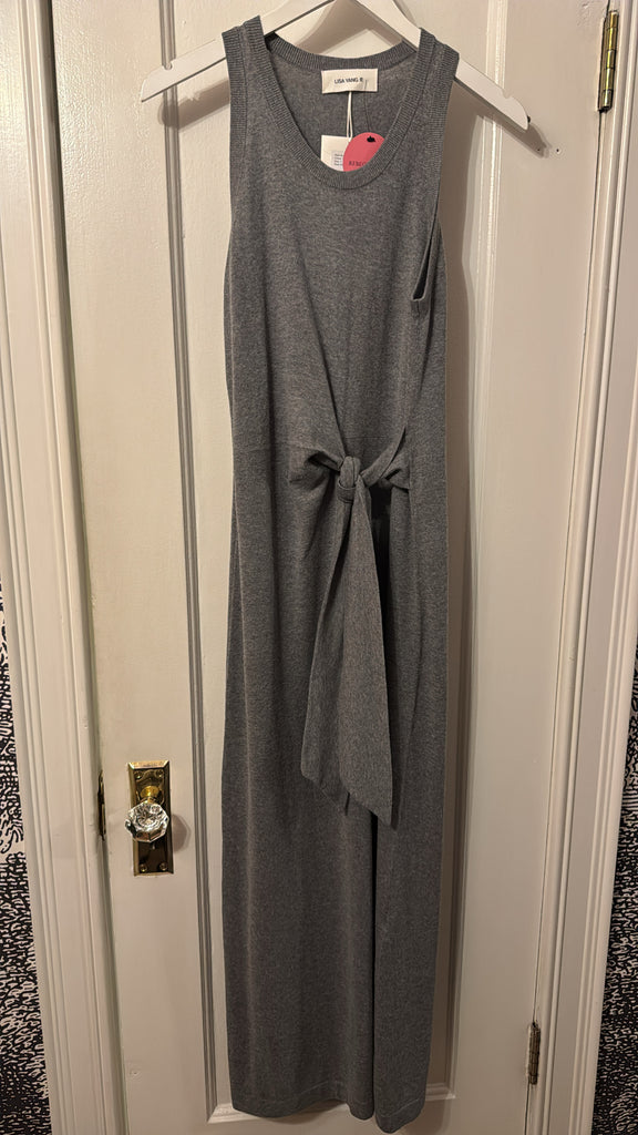 An asymmetrical statement piece, the Angeline dress is crafted in Lisa's fine knit cotton cashmere composition with a technical, one-piece construction. The regular fit, figure-skimming silhouette features a round neck, a tie knot detail that creates a chic drape along the front, a maxi skirt with a tubular hem and ribbed trims.