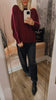 Finely knitted sweater has a relaxed fit enhanced by the batwing sleeves, and is cut to accentuate your figure with the fitted ribbed waist.