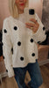 Sweater features cable stitches paired with graphic intarsia polka dots. Crafted from a wool-blend, it’s spun into a midweight knit that provides both warmth and structure. The slightly boxy fit and dropped shoulders lend a nonchalant elegance, enhanced by ribbed trims for a clean finish. Made in Portugal, it’s an effortlessly stylish layering piece for cooler days.