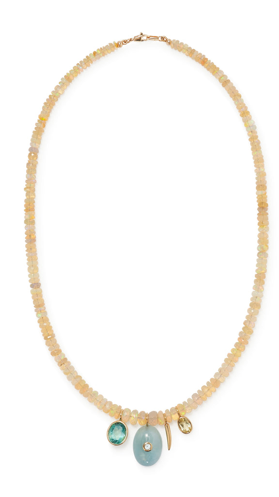 Made with 100% 14k Gold, 100% Aquamarine, 100% Topaz, 100% Quartz, & 100% Ethiopian Opal Beads.