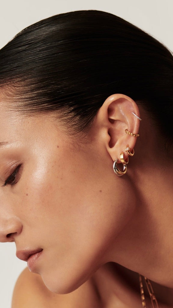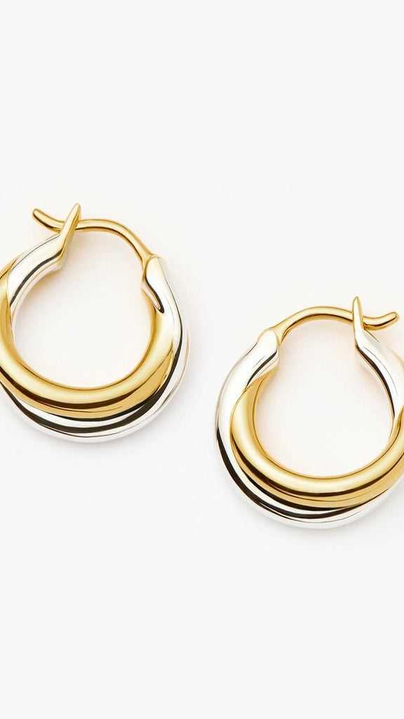 A classic reimagined. These 80s-style small hoop earrings feature a unique crossover design with mixed metal gold and silver hoops. Inspired by Missoma's best selling Lucy Williams Chunky Entwine Hoops. Just as standout on their own as they are as part of a curated ear stack.