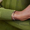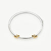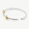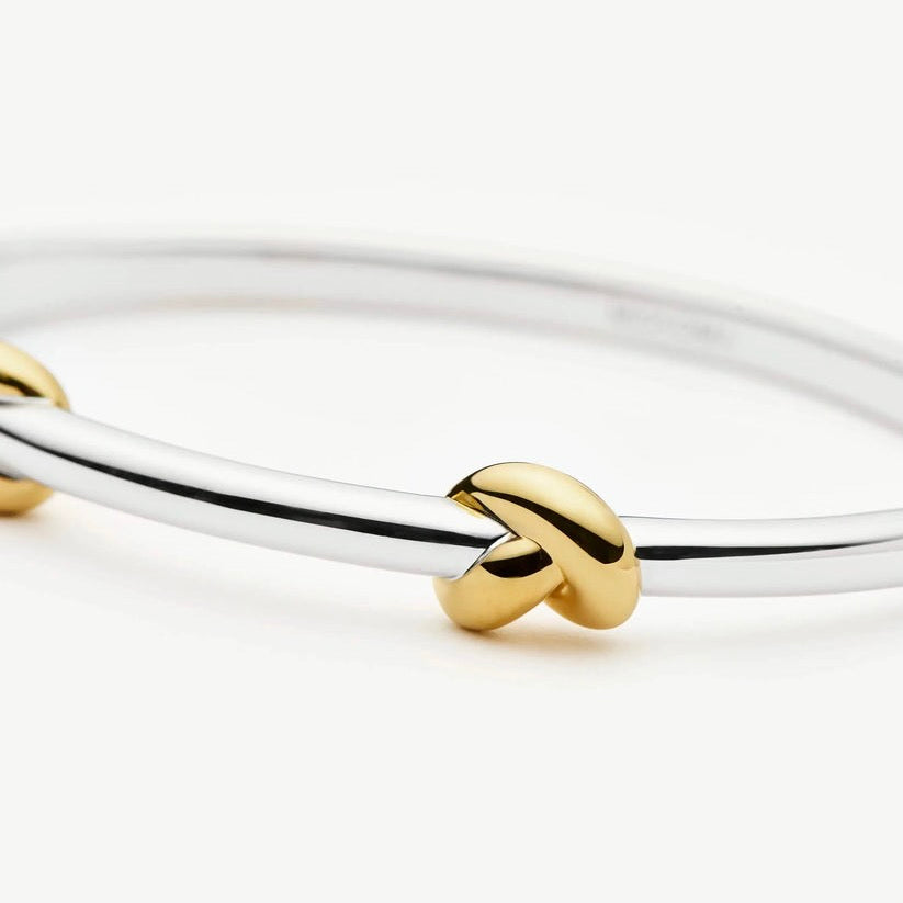The ultimate mixed metal moment. This statement bracelet features eye-catching gold knots wrapped around a silver hinged bangle.