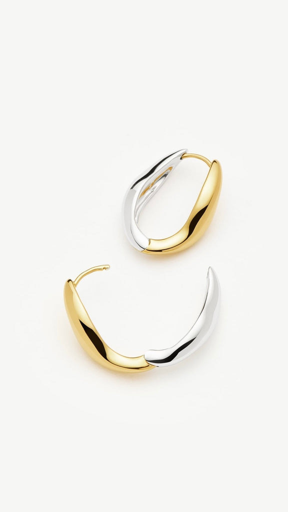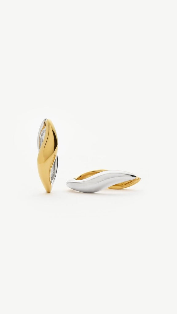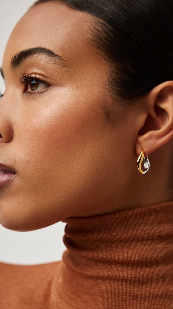 These signature Savi 'S' shaped small hoops in mixed metals can be worn with either silver or gold side facing forward, giving you two pairs of hoops in one. Style solo or pair with studs for an instant ear stack.