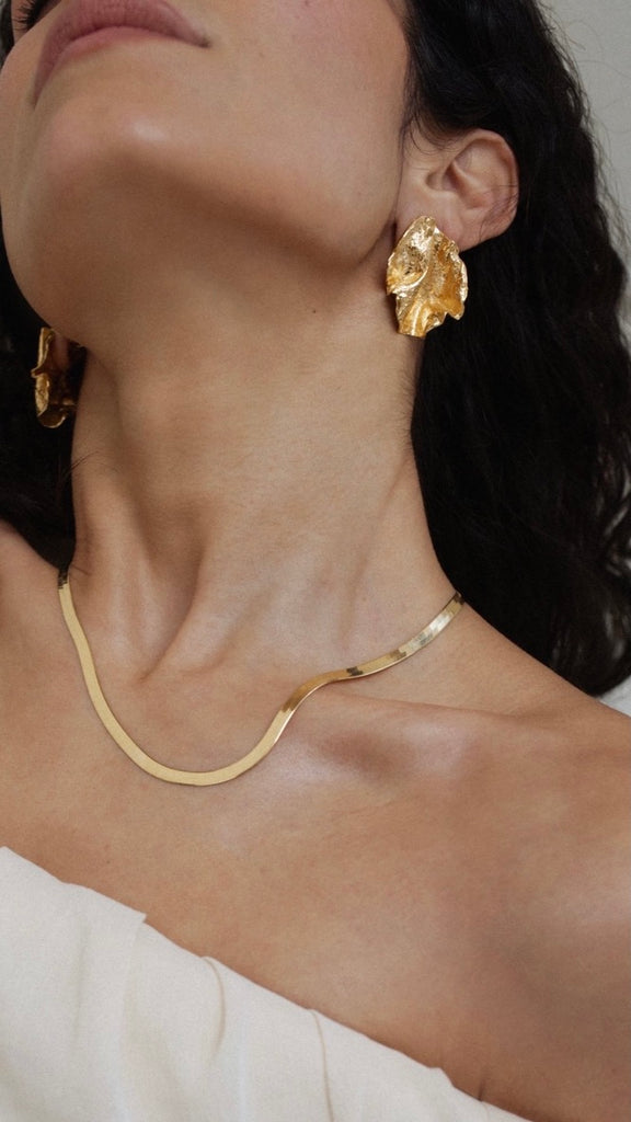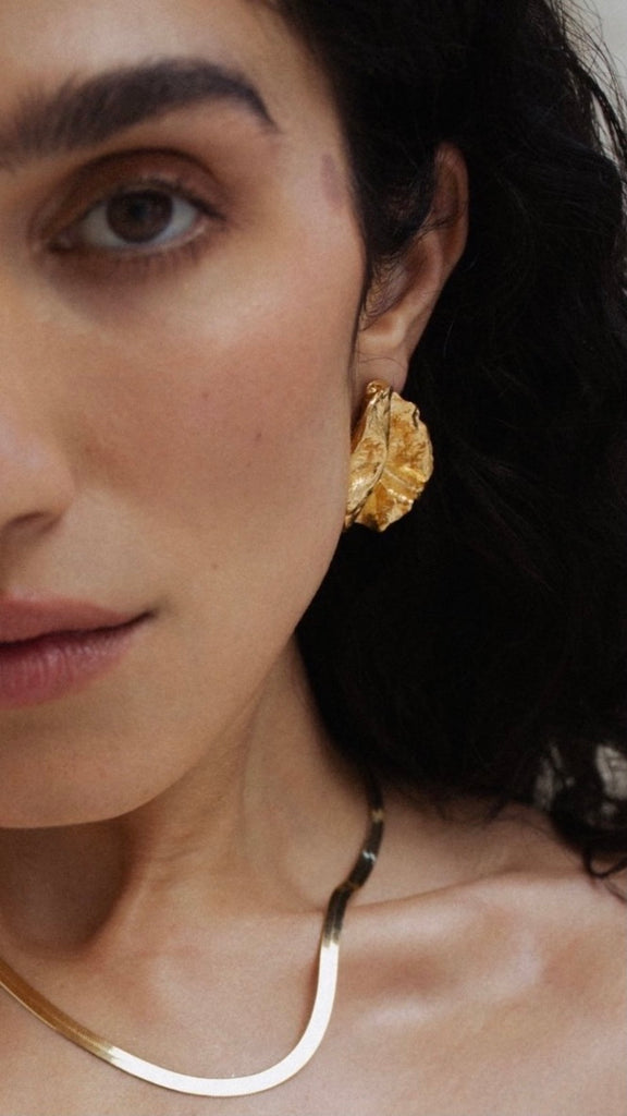 With soft fluid folds to create an almost fabric-like movement, The Coming Alive of Sculpture earrings are an ode to the revered sculpture of the Venus de Milo. As the goddess of love and brilliance, her divine stone figure comes alive with intricate life-like drapery sculpted around her hips. Allow yourself a to uncover a deeper sense of feminine softness, poise and allure when adorned in these glossy fragments.