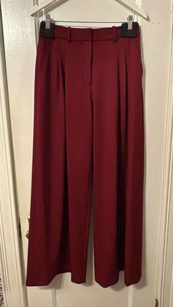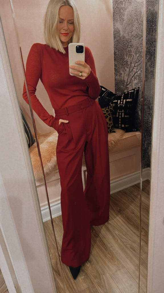 A wide leg trouser pant designed with a pleated front and welt back pockets in relaxed suiting for an impeccable drape.