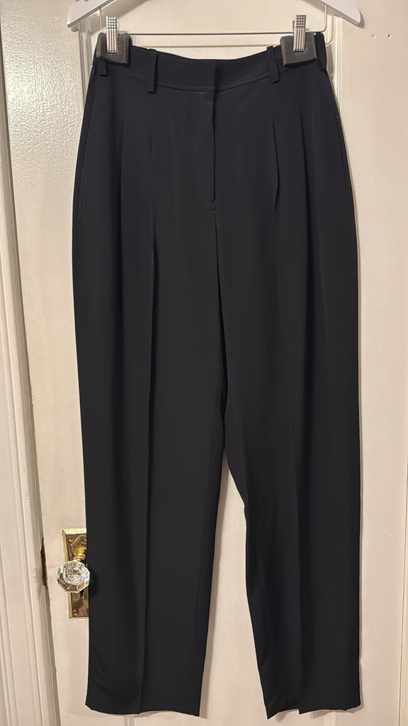 The Tarn Crepe de Soie Silk Trousers are a wide, tapered leg trouser, crafted from a fluid, lightweight silk crepe. These full-length trousers feature front pressed pleats, delivering a relaxed, tailored silhouette.