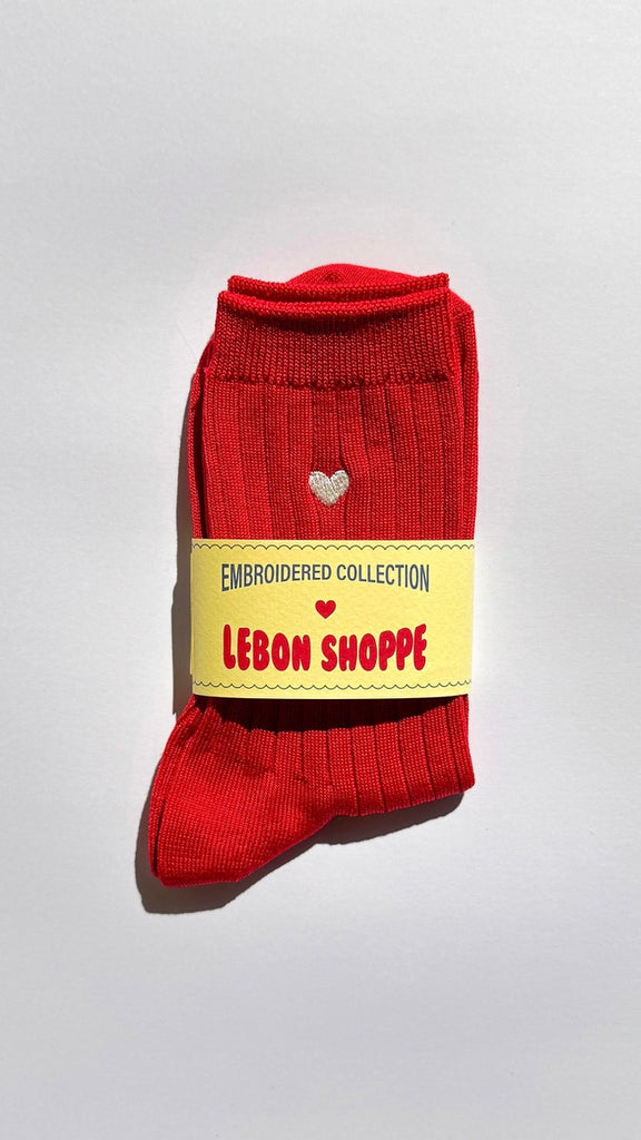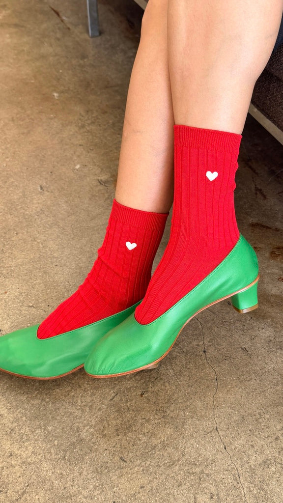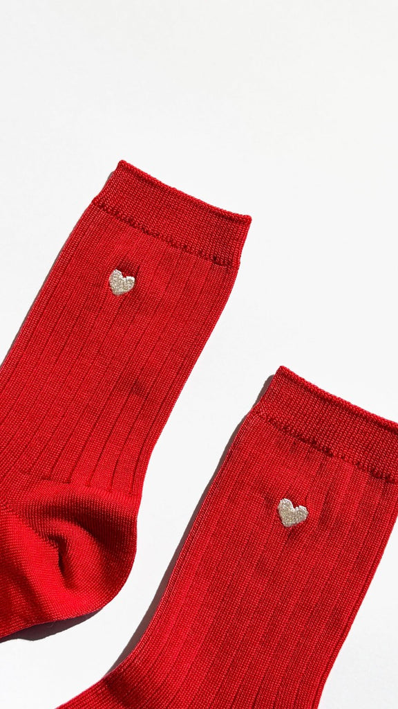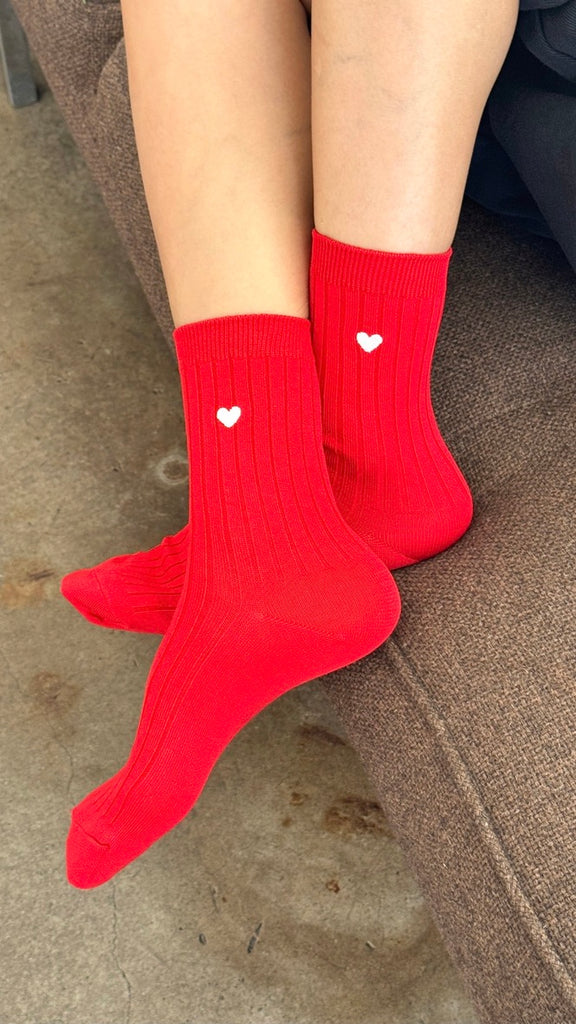 80% Cotton, 18% Polyester, 2% Spandex, in Red with White Heart.