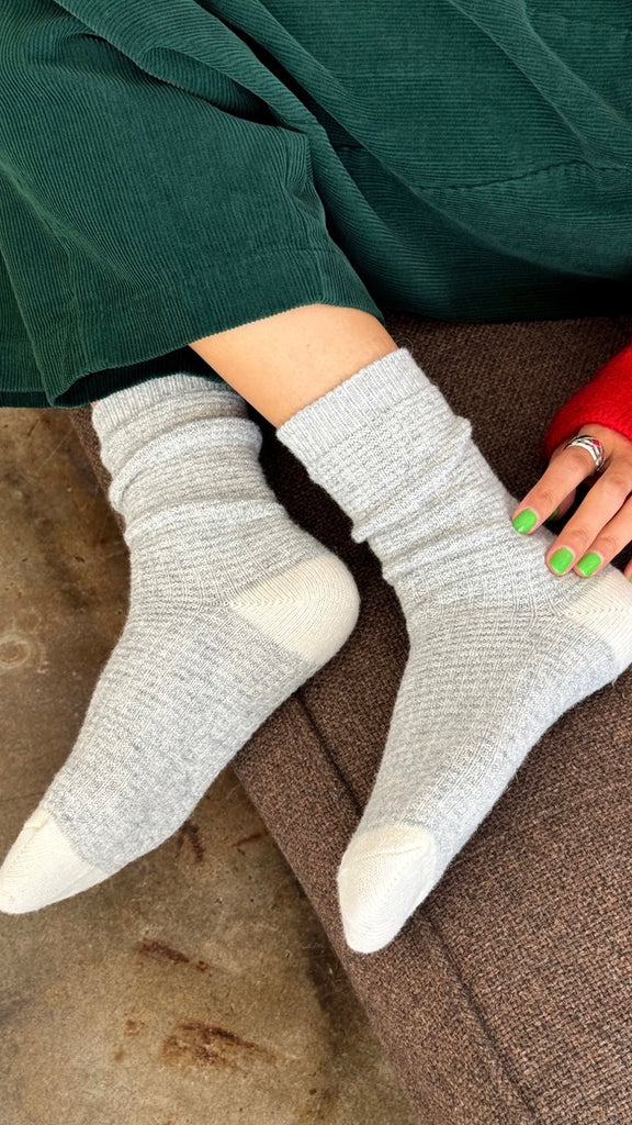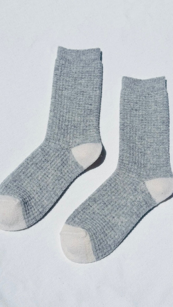 Meet the Wool Waffled Socks. A cozy essential with a lived-in feel, like a favourite pair you reach for again and again. Features a warm wool blend with a textured waffle knit and finished with a contrast toe and heel.