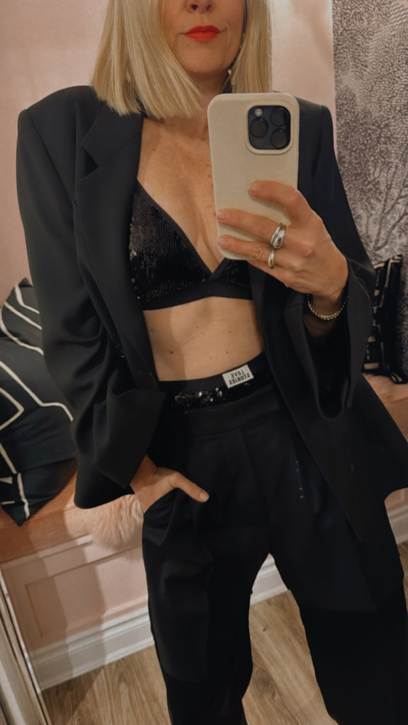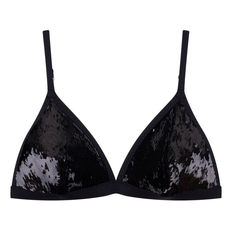 - The bralette is crafted from a cotton fabric with sequins that feels lightweight against your skin
