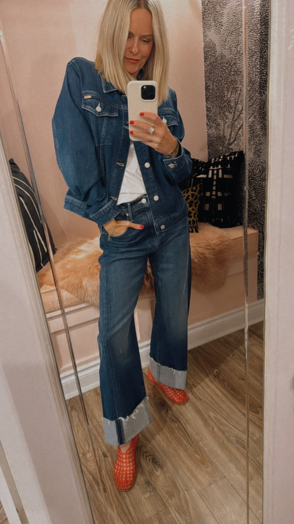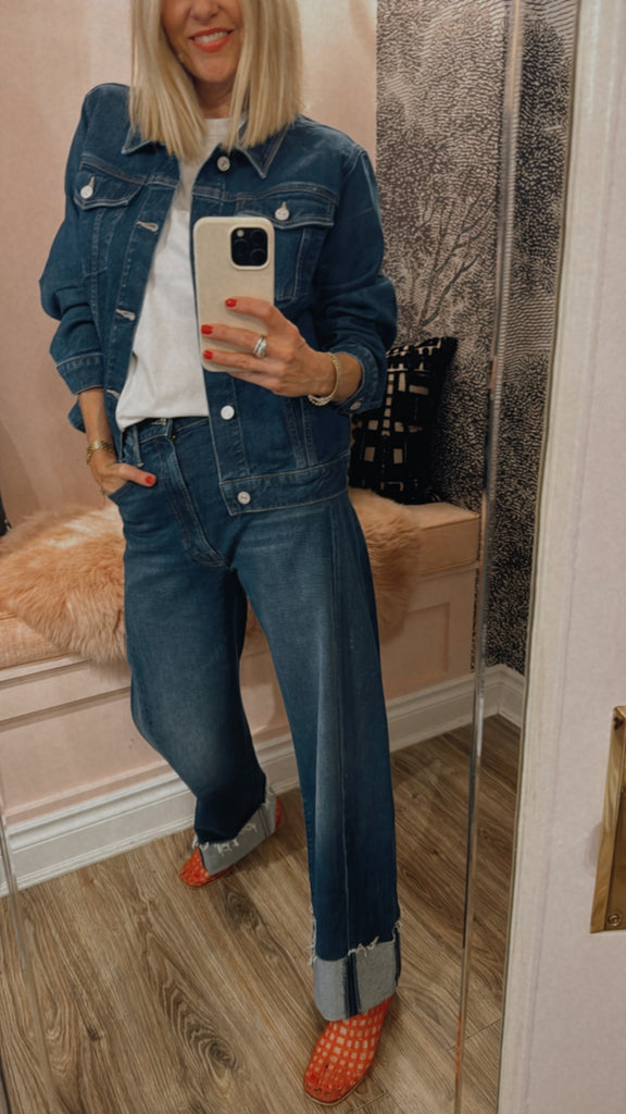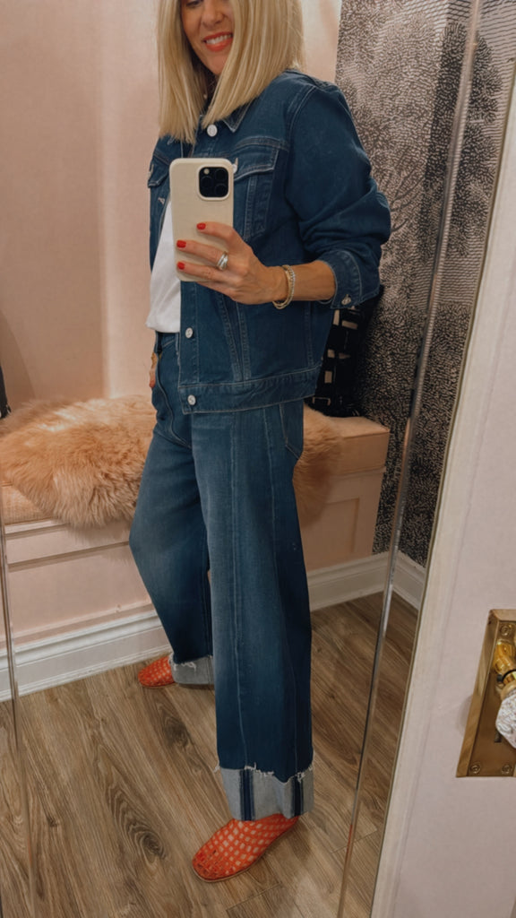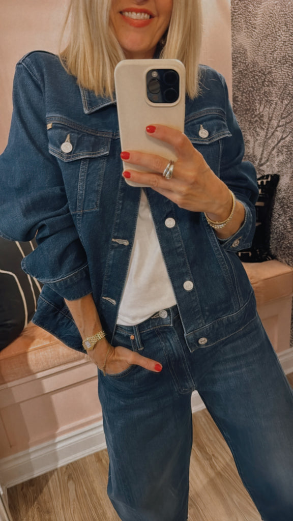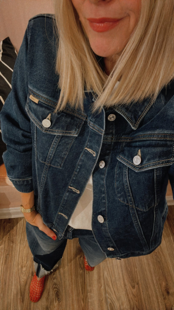 A classic denim jacket with front patch pockets and a slightly cropped fit. Made from semi-rigid SUPERIOR denim, Perfectly Imperfect is a vintage-inspired dark blue.