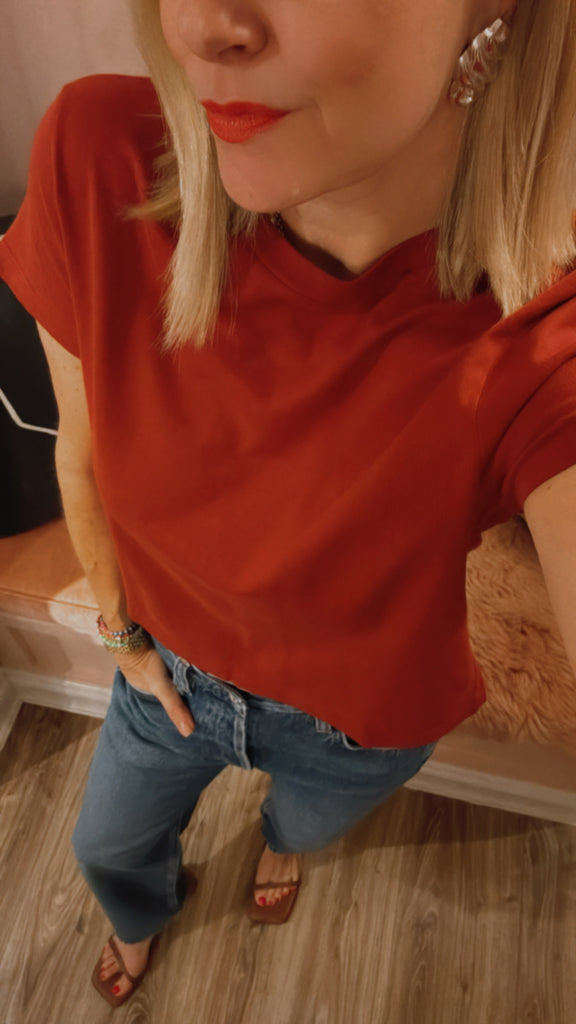 The Adine is a wardrobe essential, crafted from breathable, ultra-soft organic cotton. Ideal for wearing solo or layering, it pairs effortlessly with denim shorts or low-rise jeans, creating a timeless and flattering look.