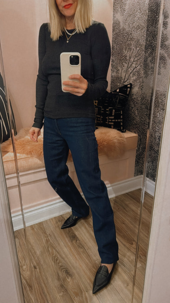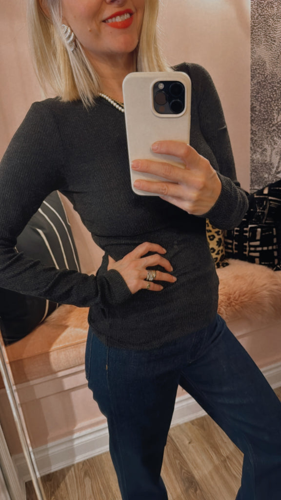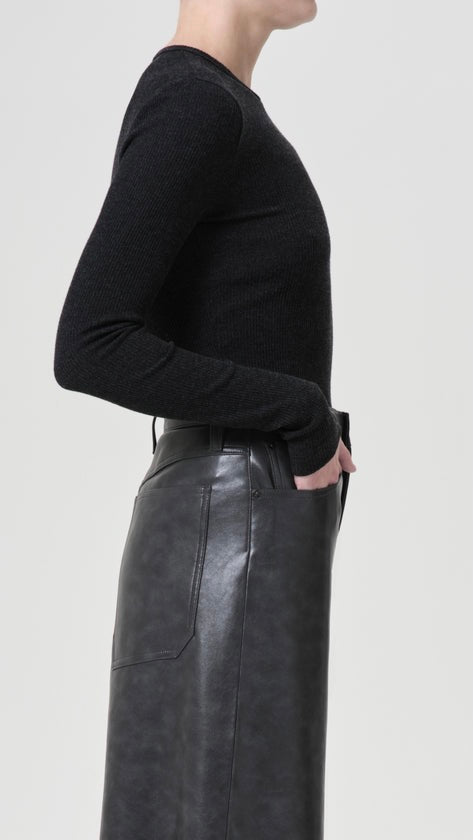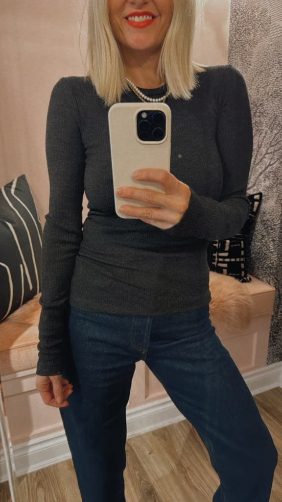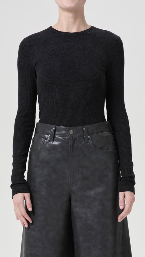 The Delphi Slim Tee is a fitted long sleeve crewneck with a flattering ribbed texture. Crafted from midweight fabric, it offers a sleek, streamlined fit ideal for layering or wearing solo.