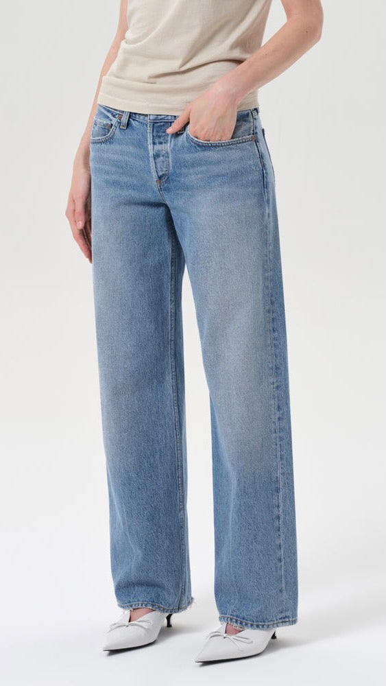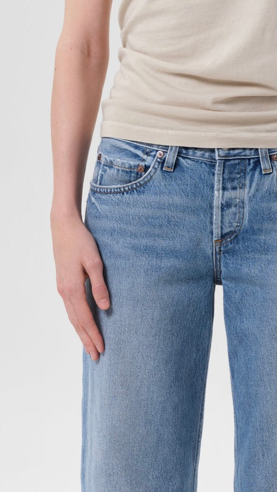 The Low Rise Loose Jeans features a low-rise fit, square top block, and a relaxed leg creating an early-2000s feel. Crafted in a medium worn in indigo, this non-stretch denim offers structure with a soft, lived-in touch. Made from regenerative cotton, these jeans are the ultimate laid-back silhouette—no effort required.