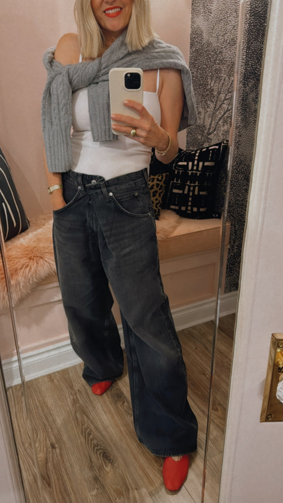An instant best-seller, the Vana Jean makes a bold impression with it's signature fold-over waistband. Designed with a mid rise and intentionally oversized, relaxed fit, this style is crafted from rigid regenerative cotton for a soft yet structured feel. Pair it with a second-skin tank or an undone button-down for effortless impact.