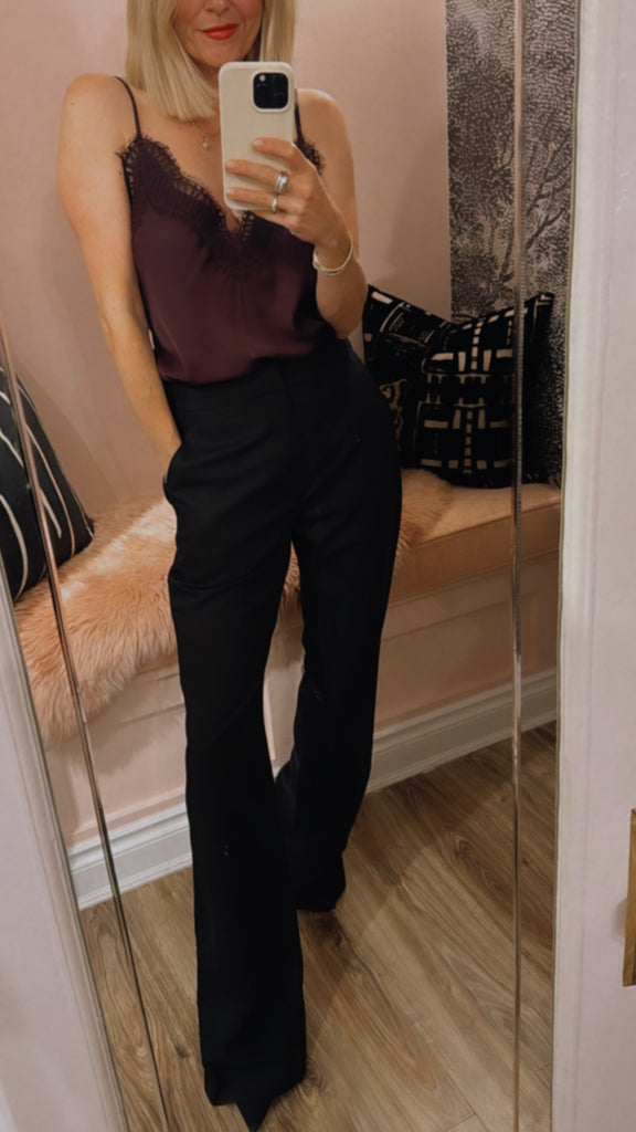 A.L.C.'s best-selling high-rise trouser returns in a new suiting twill—softly structured with a touch of stretch. The slim-through-the-thigh fit flares subtly at the hem, creating a clean, elongating silhouette suited to work, events, and beyond.