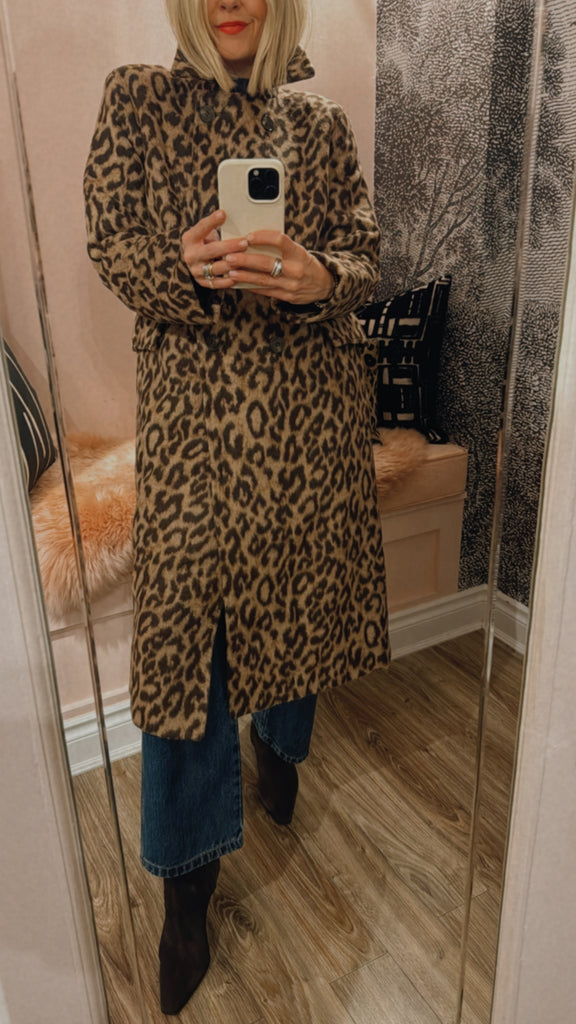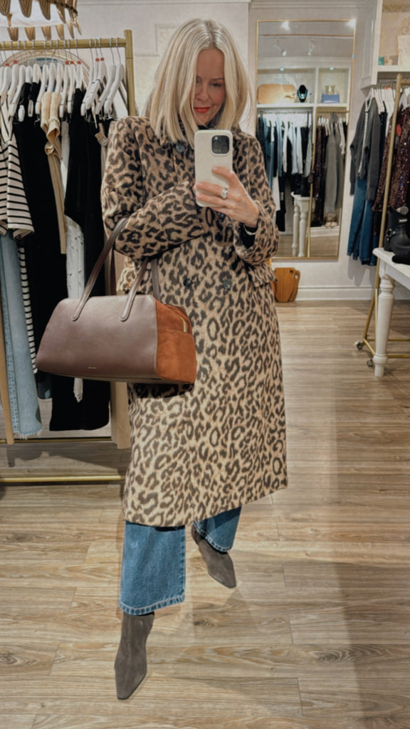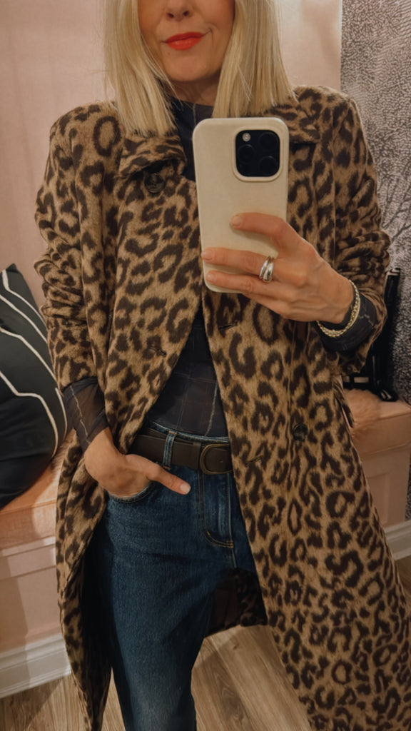 The Dixie Coat is truly a statement piece with its bold leopard print that gives every outfit a confidence boost. The cool outerwear is made in a comfy wool blend and keeps you warm with its collar, long length and extra long sleeves. The wool coat has an oversized fit with a classic double breasted button closure as well as a buttoned waist belt at the back, which makes it possible for you to adjust the fit to your liking. Your new favourite and vibrant companion this season.