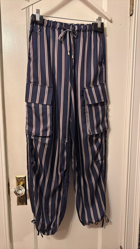 The Nasreen Trousers are the perfect blend of comfort and style, as the lightweight trousers are made in silk for an effortlessly chic look. Designed with a loose fit, elasticated waist and adjustable drawstrings at the waist and ankles, the trousers have a relaxed yet stylish silhouette.