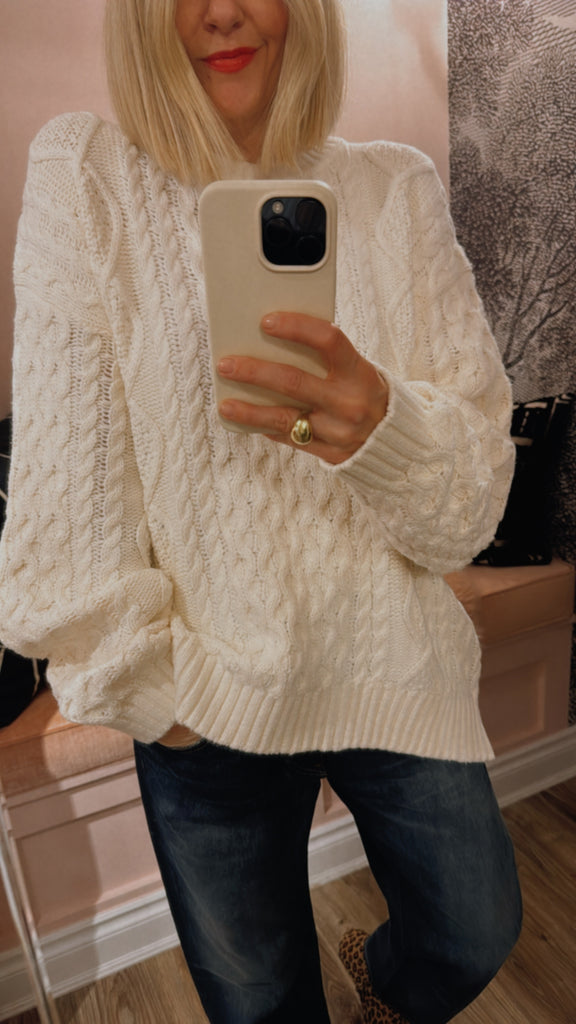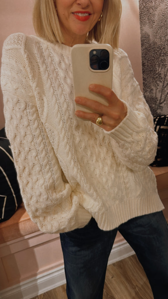 Meet the Irish Cable Oversized Sweater, beautifully knit with timeless cable detailing and a relaxed, oversized fit you’ll want to live in.