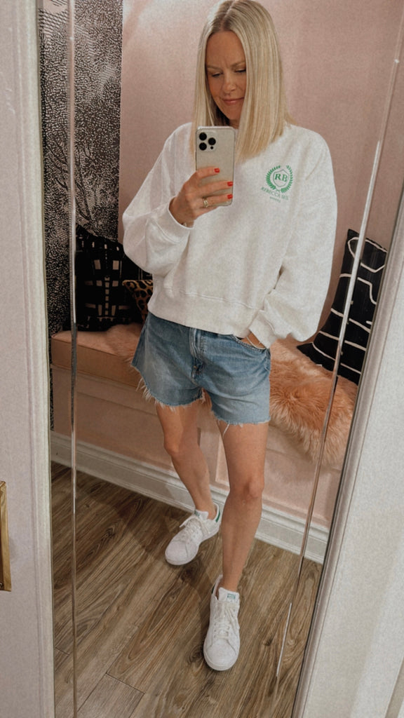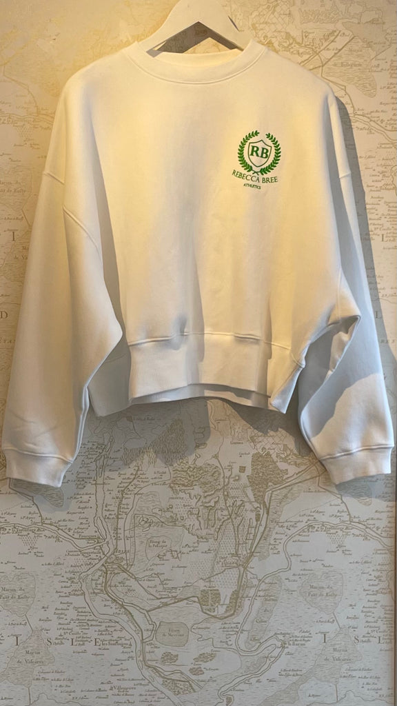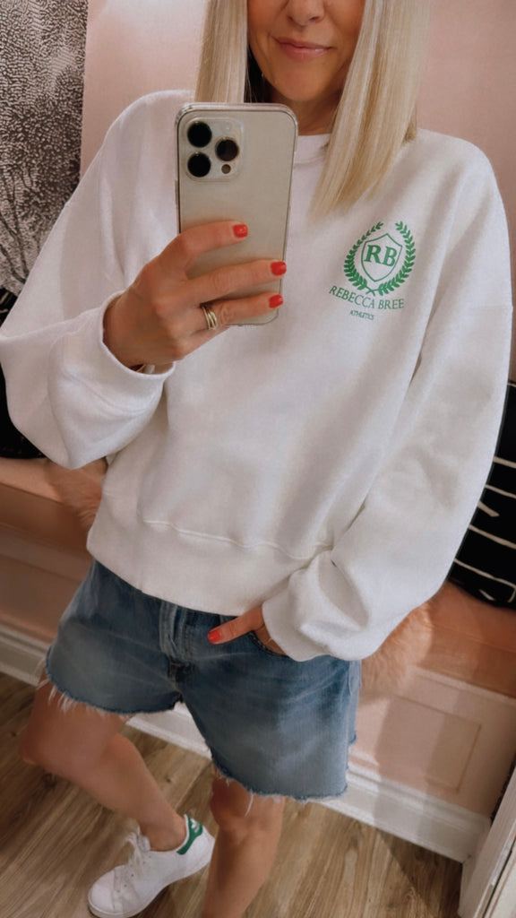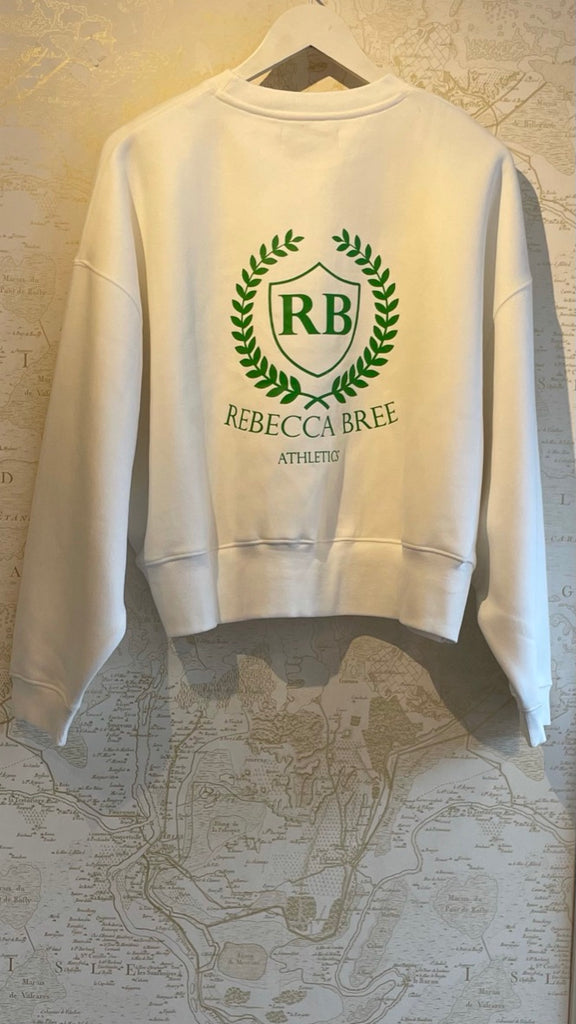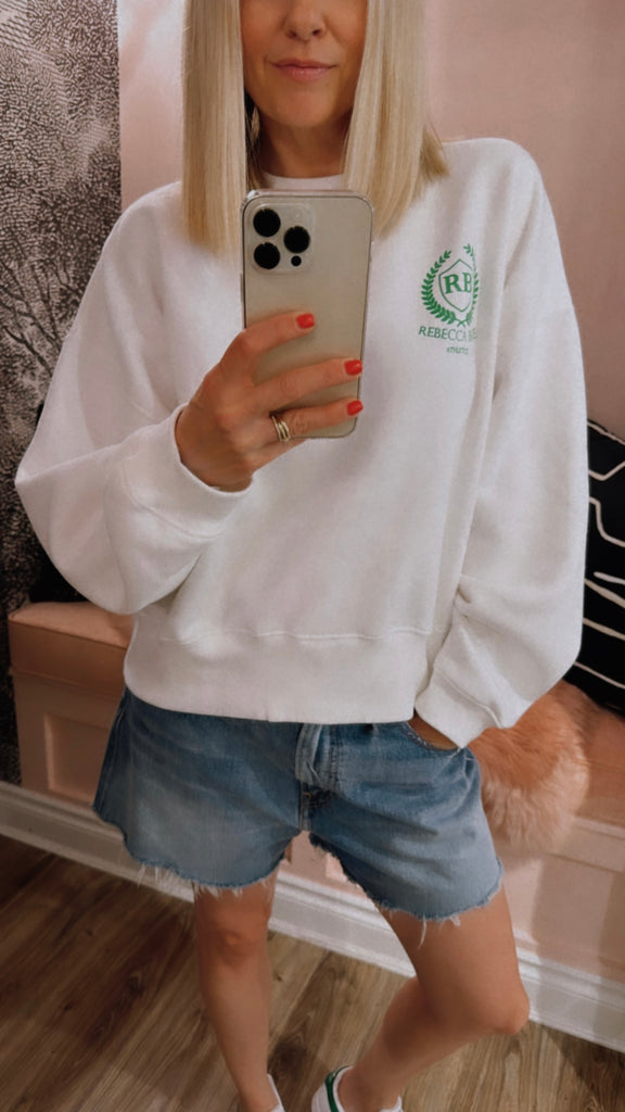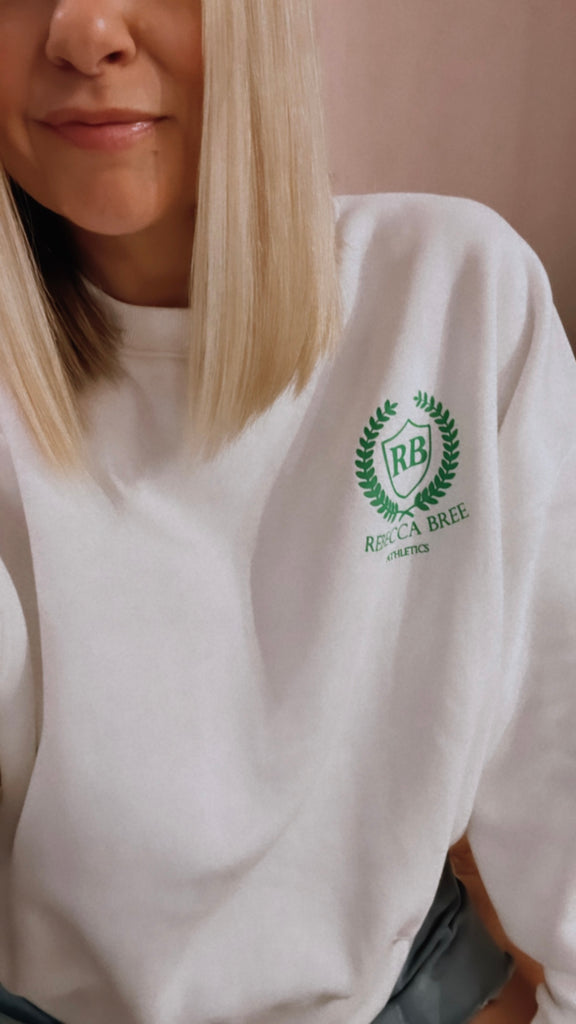 A boxy drop-shoulder sweatshirt, super soft, super cozy. Designed by Rebecca herself, in collaboration with Brunette The Label. The perfect addition to amp up your pre and post game style, or your everyday look. GO SPORTS! 💚