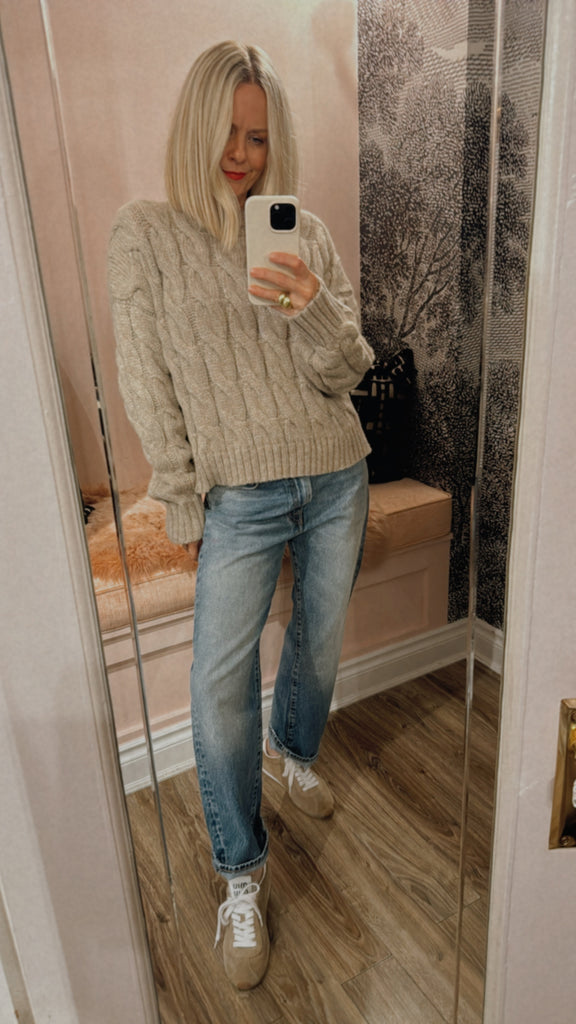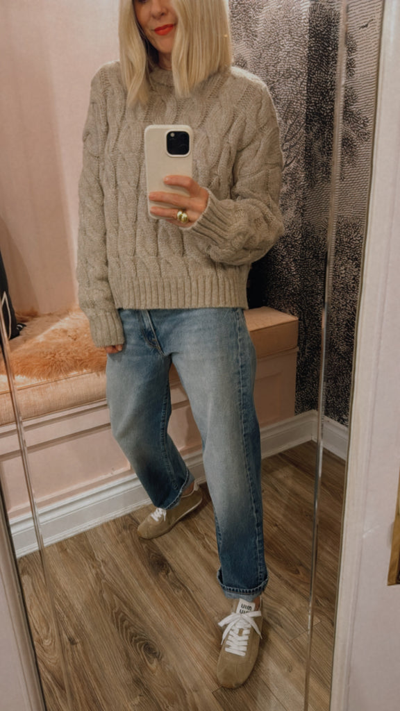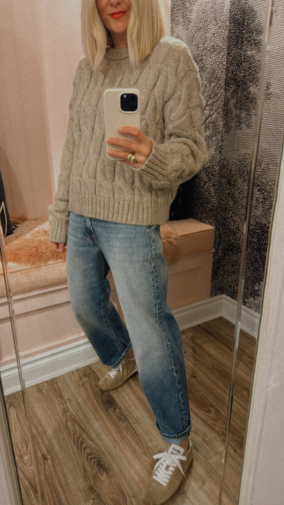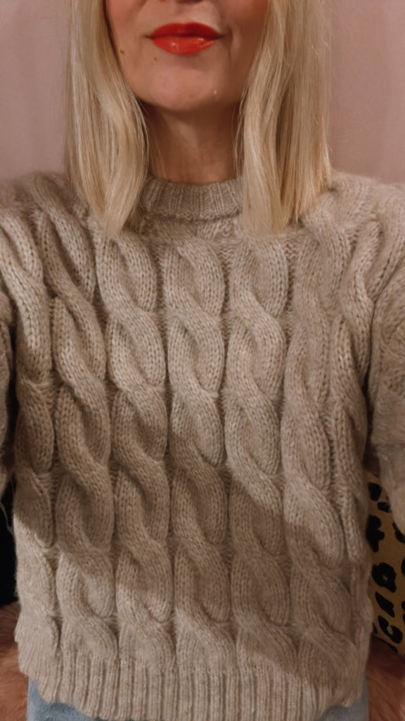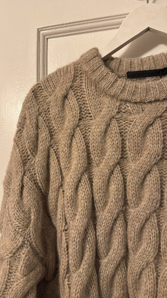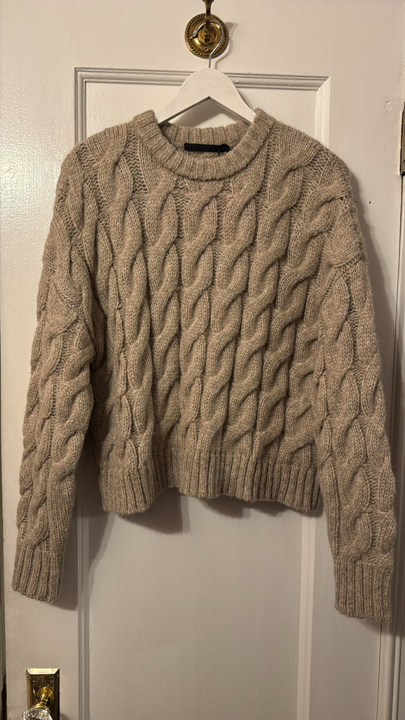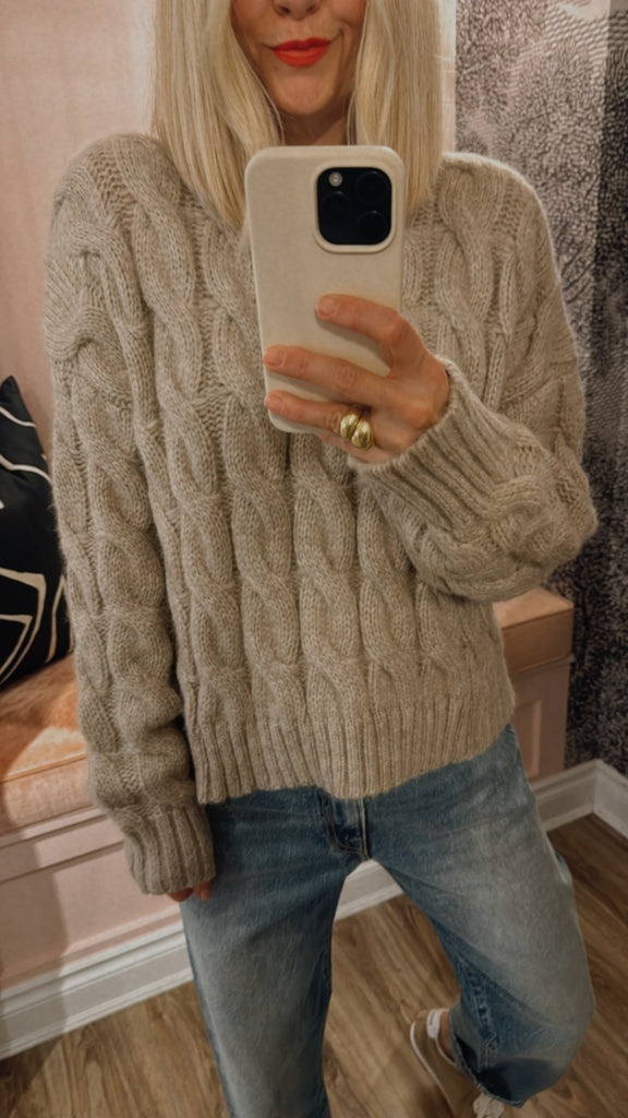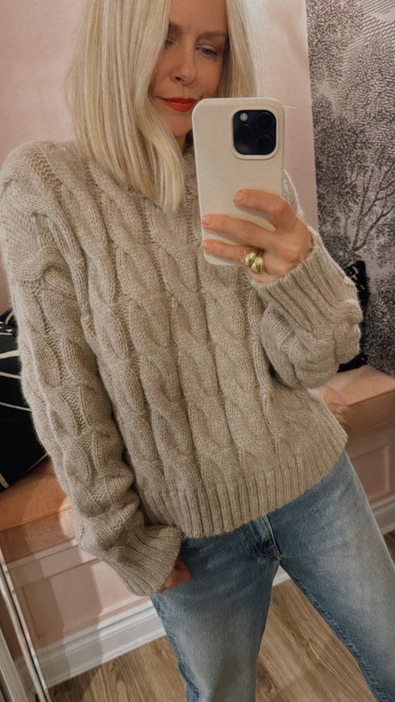 Classic design meets modern luxury in the Cable Serena Crewneck. Featuring the body of our best-selling Chloe Crewneck, the Serena is made from a plush and lightweight Peruvian alpaca-wool blend with a classic cable-stitch, boxy cut, and cozy ribs at the sleeves and hem.