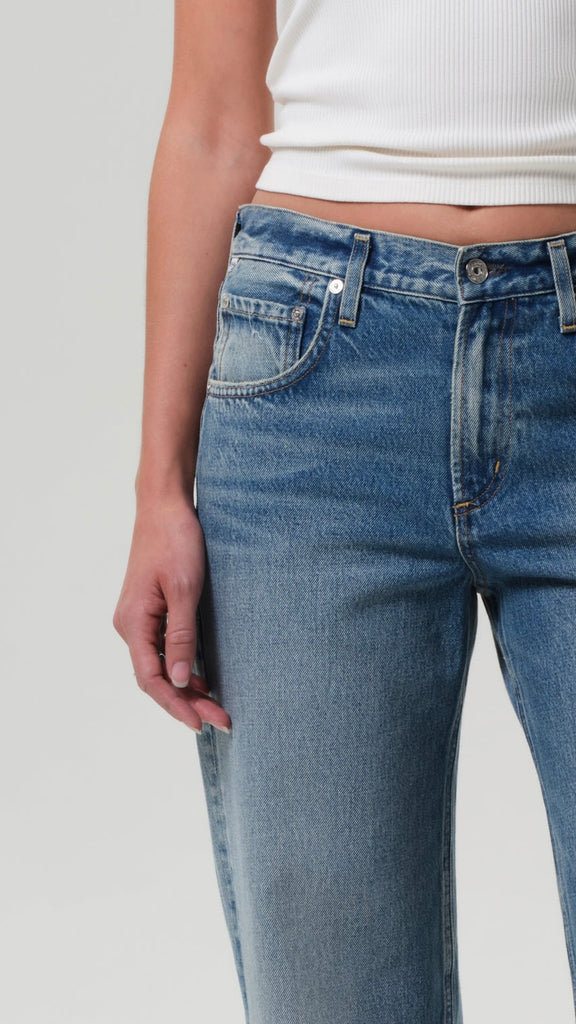 The ‘Lindz’ is a relaxed straight leg with a low rise and an effortless attitude. Crafted from rigid regenerative cotton with a soft hand, it offers all-day ease with vintage appeal. Bijou’s medium indigo wash and soft fading nod to lived-in favorites—pair with a tucked tee or cropped jacket for a laid-back, pulled-together look.