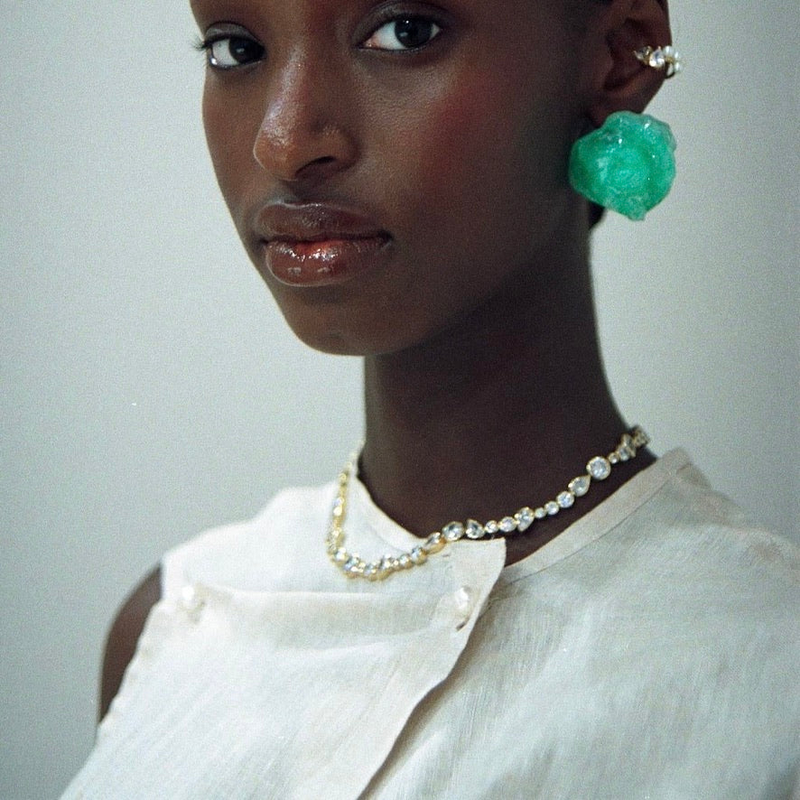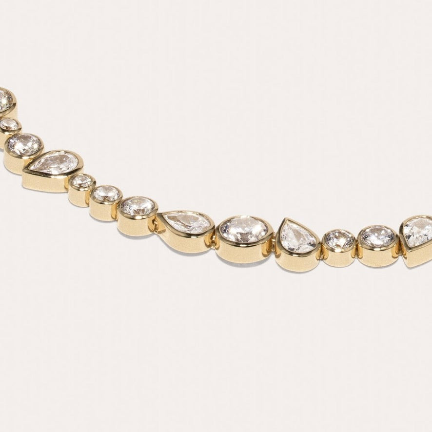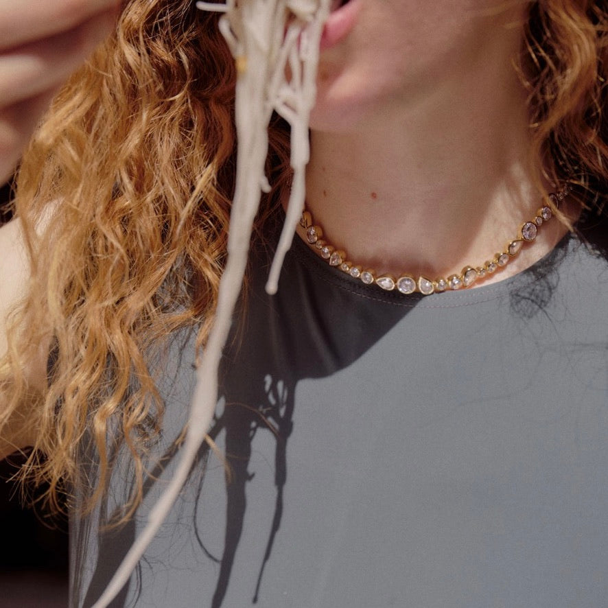 The piece is thoughtfully handcrafted using cubic zirconia and recycled sterling silver plated in 14ct yellow gold vermeil.