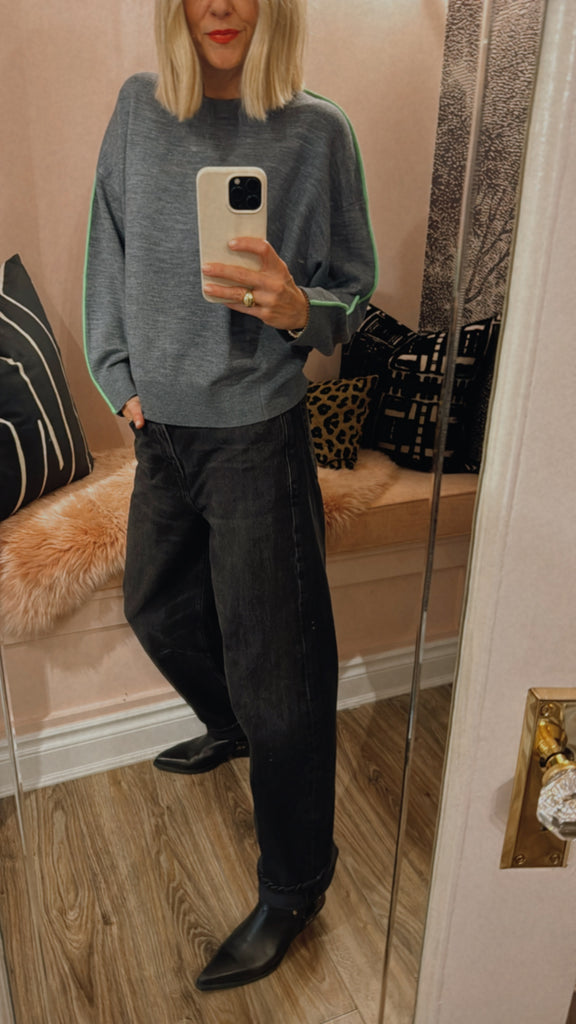 Finely knitted sweater has a relaxed fit enhanced by the batwing sleeves, and is cut to accentuate your figure with the fitted ribbed waist.