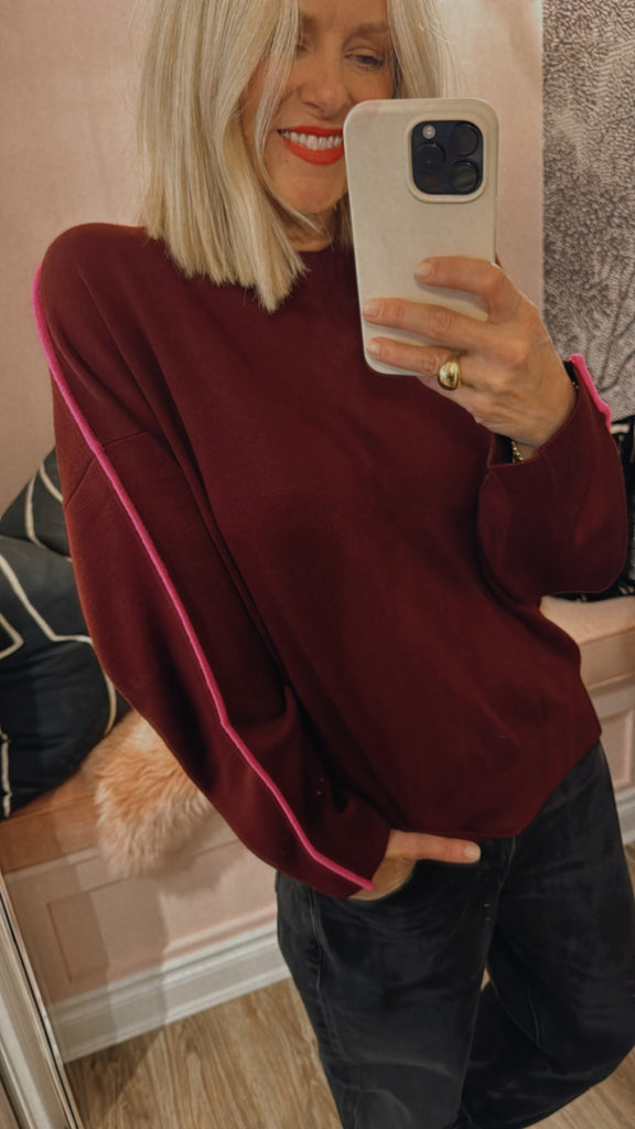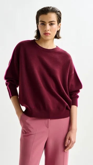 Finely knitted sweater has a relaxed fit enhanced by the batwing sleeves, and is cut to accentuate your figure with the fitted ribbed waist.