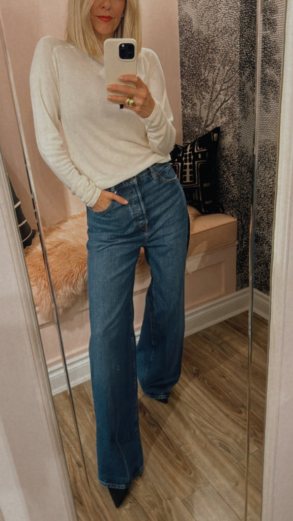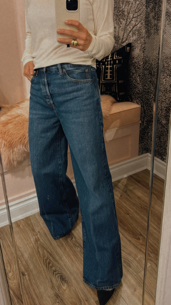 Your cleaned-up baggy jean for the week. This fresh new fit features a high rise and relaxed wide leg that takes you to the office, the classroom, and beyond. Made from 100% regenerative cotton.