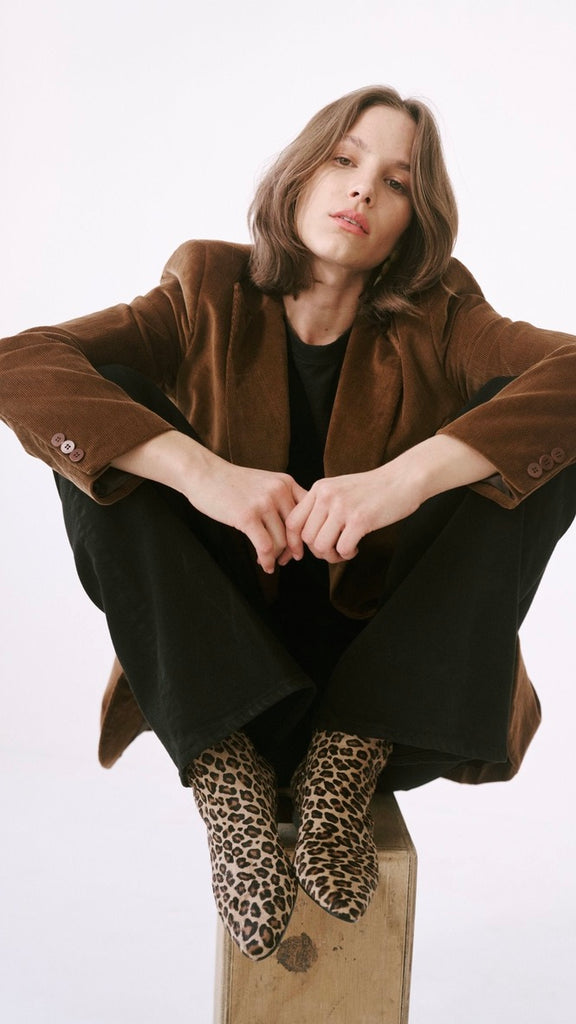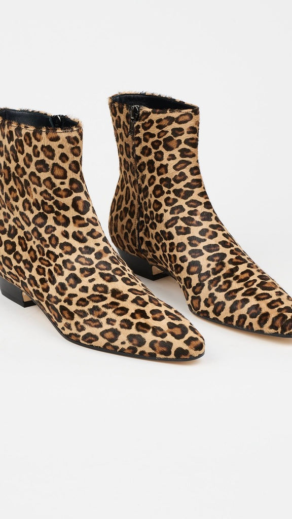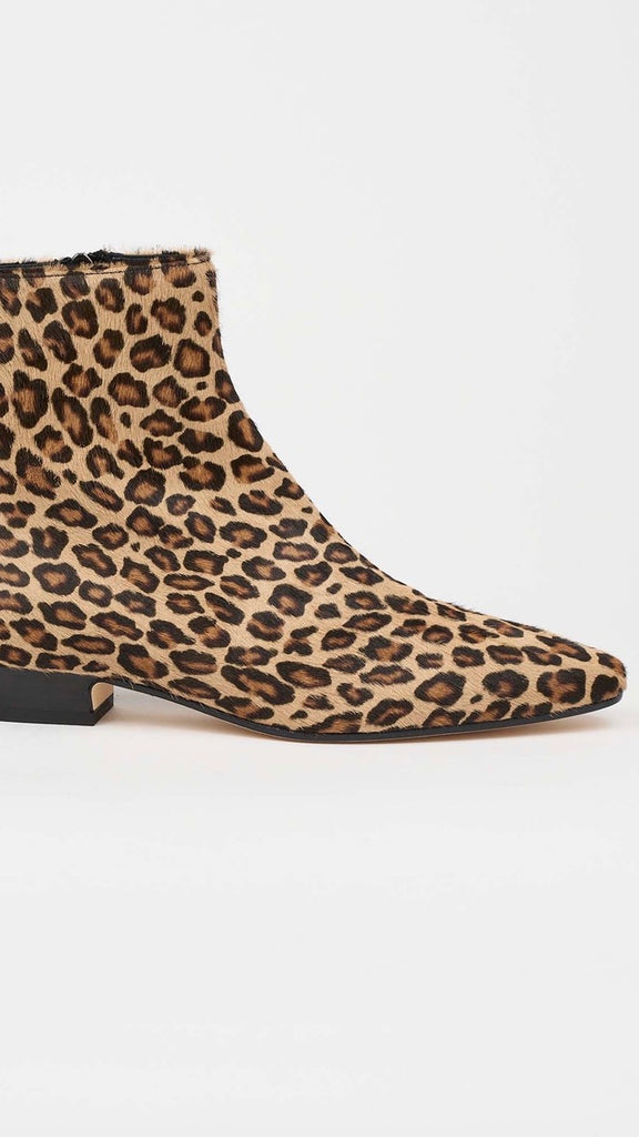 Introducing the Lennon Boot. A true Beatles inspired boot, with an elongated toe and a cuban inspired heel. A long and lean beauty handmade in Leopard Ponyhair. A leather sole with integrated rubber anti slip injection and a stacked leather heel.
