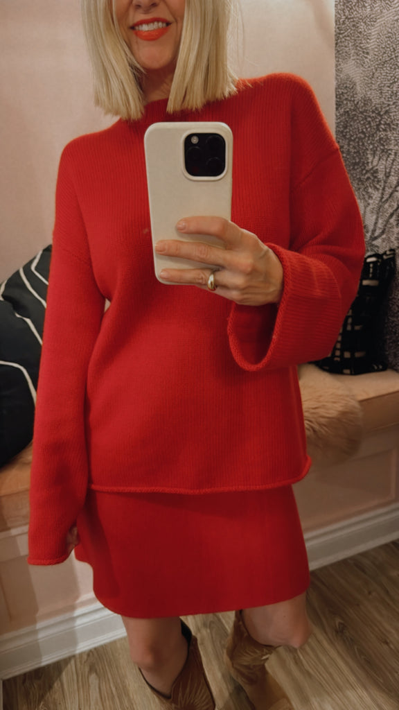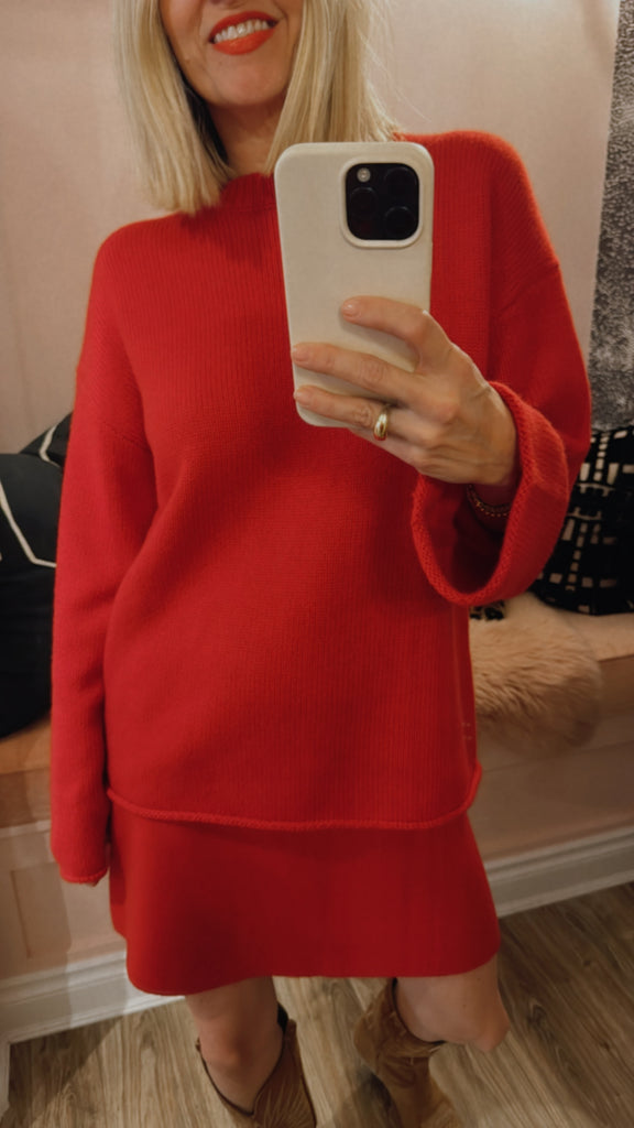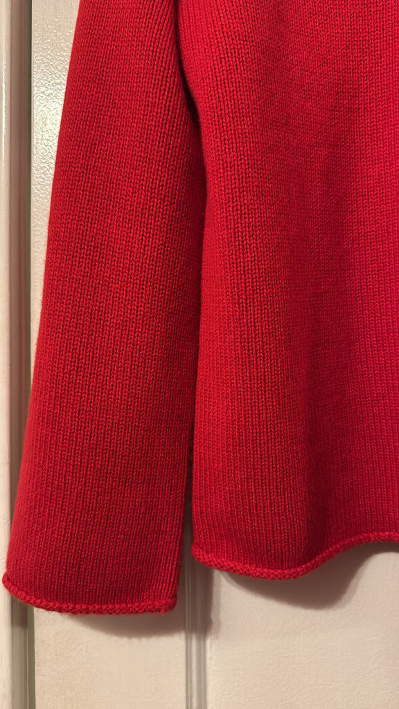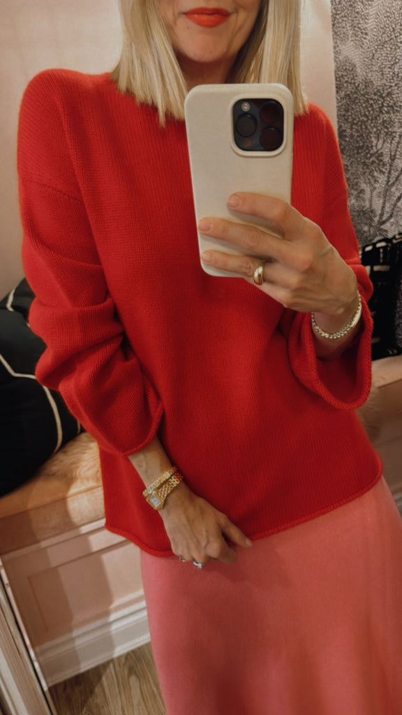 A crewneck with modern character, the Kristy sweater is crafted in Lisa's heavy knit cashmere with a textured hand feel. The relaxed fit, longline silhouette is accented by a wide crew neck, drop shoulders, wide full-length sleeves and ribbed trims, with a rolled hem for a touch of tactility.