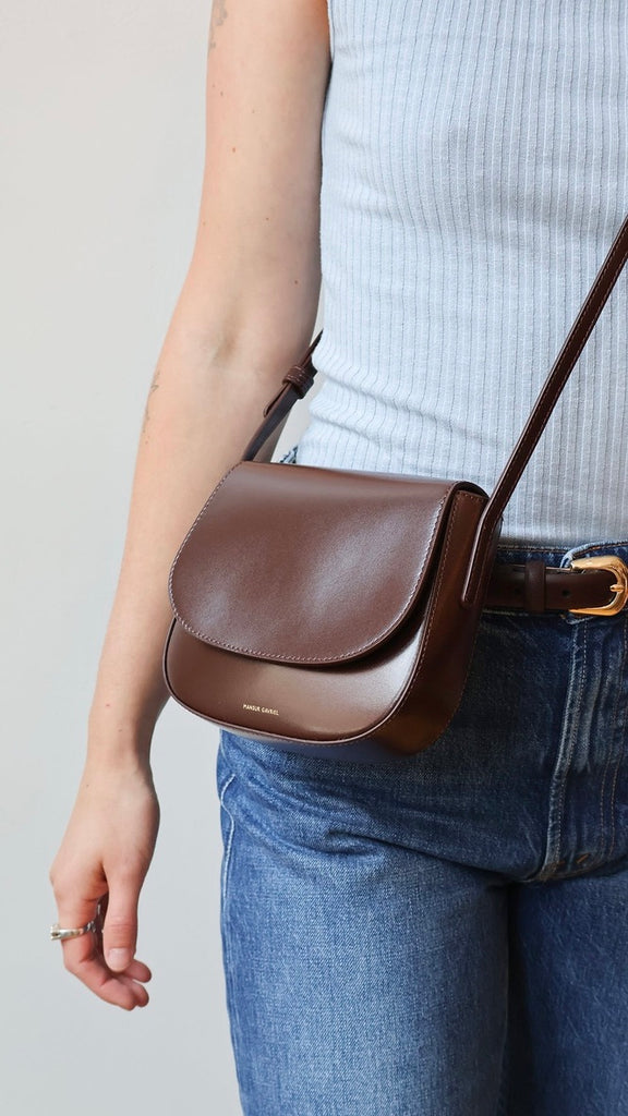 Mansur Gavriel's mini crossbody retains all the design details and function of their original hero. Made from our classic Vegetable Tanned leather, it features an adjustable strap and slim silhouette for comfortable carrying.