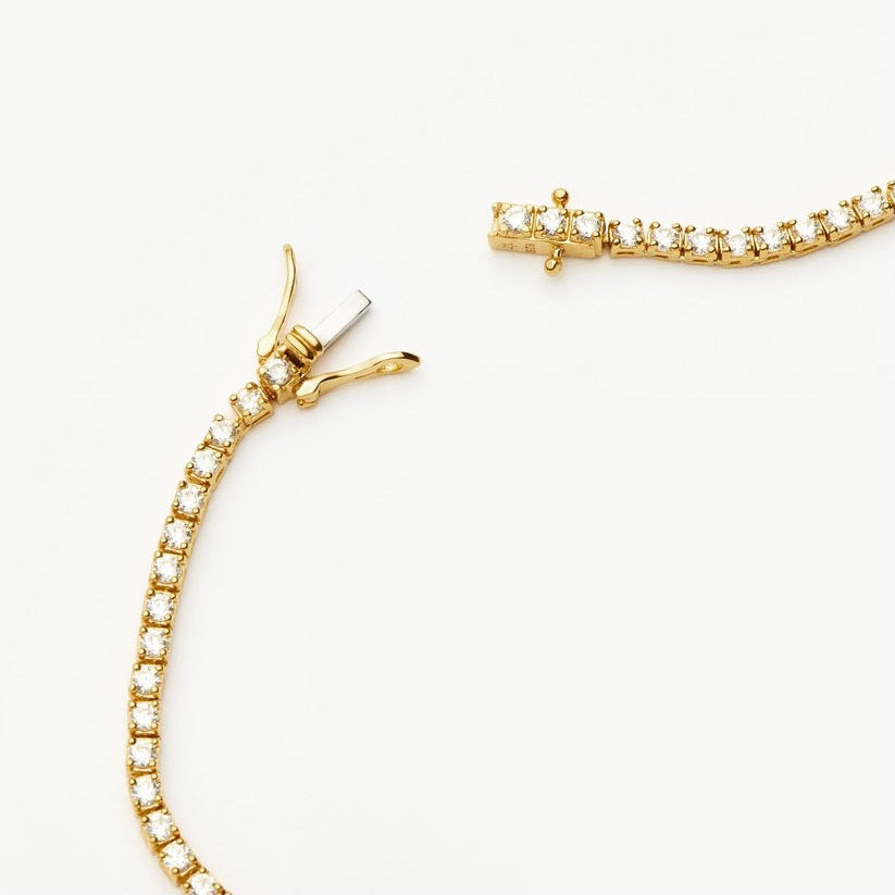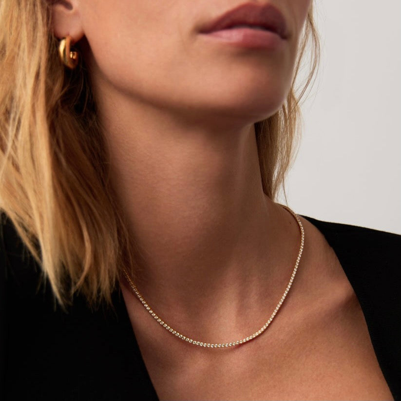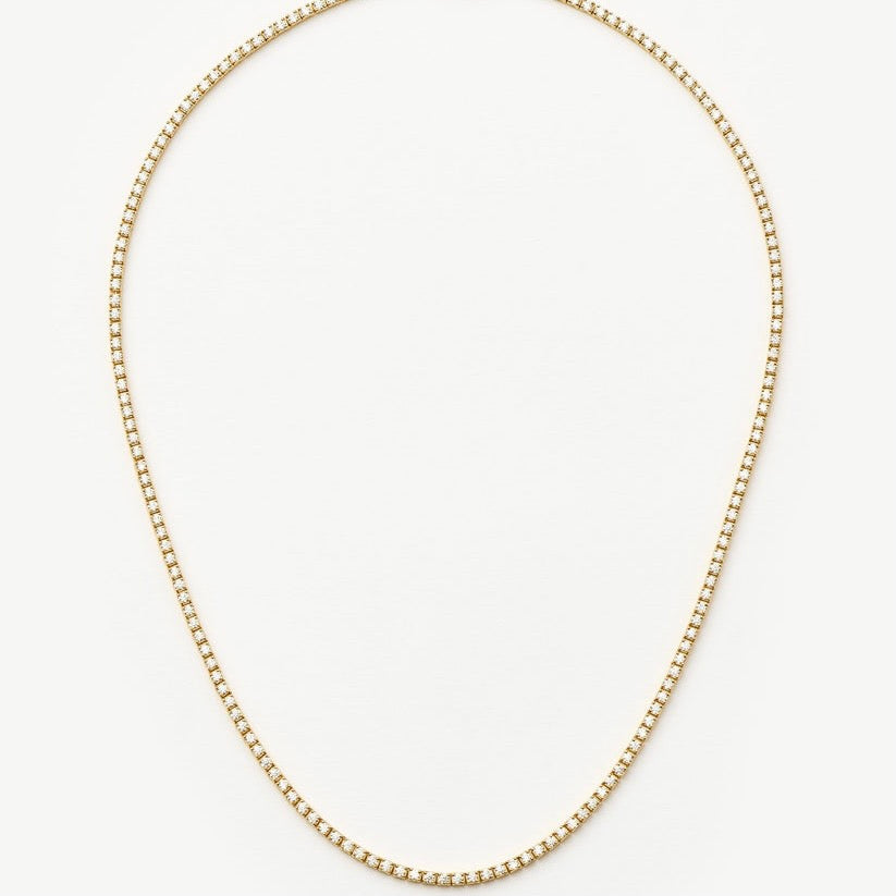 The ultimate luxe layer, this everyday gold necklace is embellished with cubic zirconia. Each individual piece in the Tennis Collection takes 24 hours to craft by hand.
