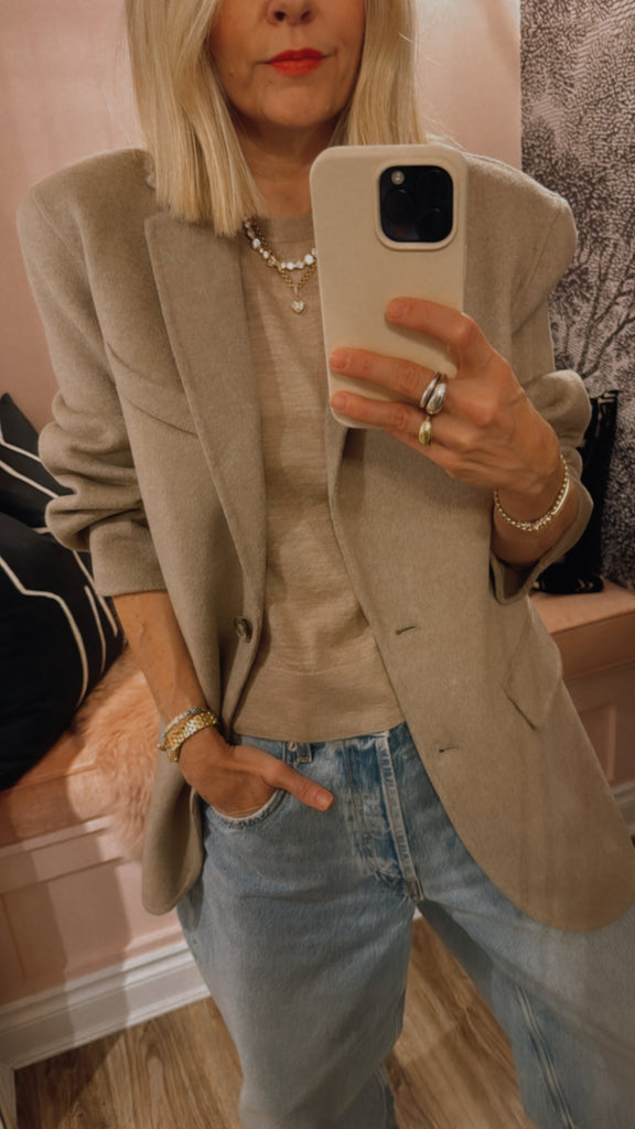 90% Wool, 10% Cashmere, in 'Oatmeal'