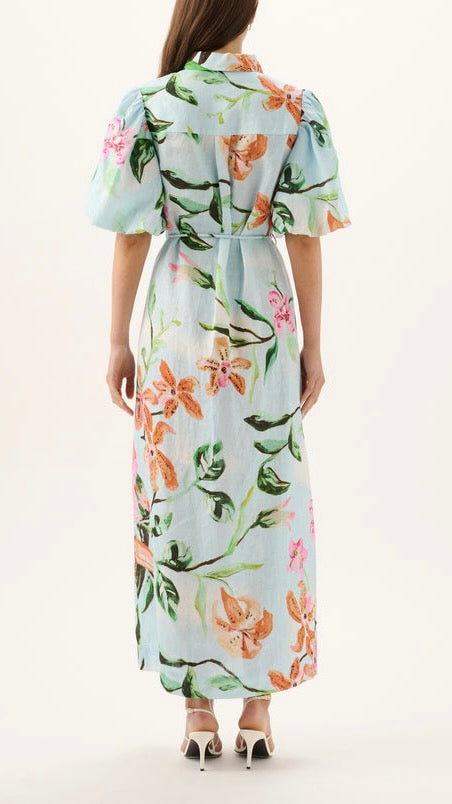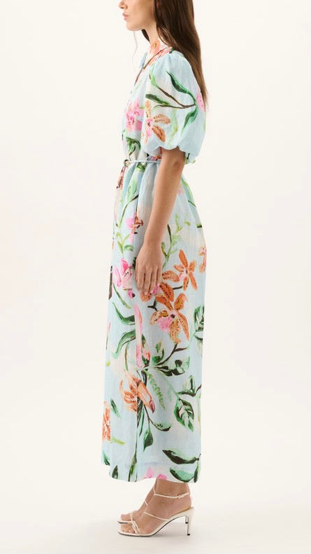 Falling to a maxi length, the best selling Berkeley Dress offers an easy, throw-on silhouette elevated by our exclusive Tucano print. Designed for days that turn into evenings, the Berkley Dress is cut from breathable linen with a softly structured collar, waist tie and side seam pockets.
